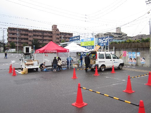 10月19日の朝、7時50分に副支部長より携帯に電話があります。「雨降ってるけど、実施ですかと警察より問い合わせありました」「支部長は雨天決行だと言ってますので予定通り行いますよ」と返事をしてまずは会社に向かいます。8時15分ぐらいに会社(シトロエン名古屋天白ショールーム)に着き今日のマイカー無料点検の機材を積み込んで準備していると今度は緑署生活安全課の警部補から携帯に電話があります。「雨だけど大丈夫ですか」と答えはもちろん「もうじき晴れますので大丈夫です」とです。8時40分に会社からマイカー無料点検の開催地であるスーパーヤマダイに向かいます。9時に現地に着くと、すでにみんなが準備をしています。そして、昨夜場所取りをしておいた甲斐があり、置いてあった車も場所が移動しています。よかったです。これで無料点検をする場所が確保できました。雨もほぼ上がりました。シトロエンのテントも目立ってるでしょ!落花生85キロも届きました。85キロとはすごい量です。すくい取りをする器に25キロ分を移します。ならすとこんな感じになります。始まる前は落花生より、栗のすくい取りの方がいいなんて言いましたがこれはおもしろそうです。しかも表示はこんな表記がしてあり、楽しそうです。落花生!見直しましたよ。続きは明日以降のその2へ・・・・今日の公式ページは「どちらのC4色が好きですか?」です。