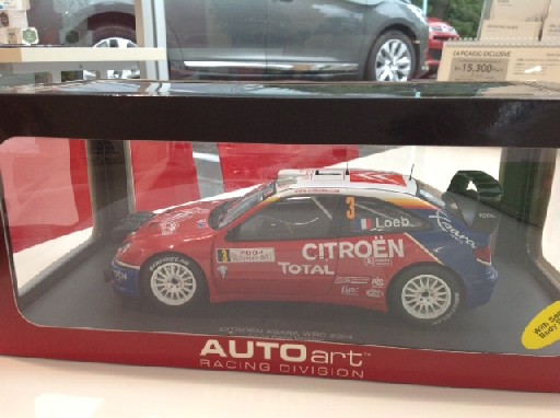 友達から電話があり、こんなミニカーを見つけたから買ってくとでした。すぐ近くにいたのか、すぐにショールームに現れ1/18のクサラのミニカーを持ってきてくれました。懐かしいWRCのローブ仕様です。2004年のクサラみたいです。もう9年も前なんだ!今日の公式ページは「どちらのDS4色が好きですか?」です。