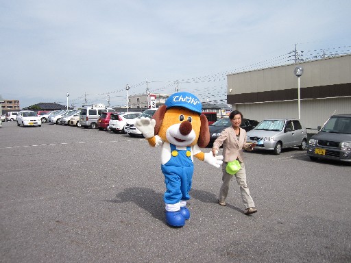 マイカー無料点検の切り札? いや救世主と言えば良いのか「てんけんくん」は視野が狭いので足下が見えなくて転びやすいので、手助けする人が必要です。大変受けは良いのですが、なぜか泣き出す子供もいました。そろそろお昼も近づき、弁当が届きました。スーパーヤマダイさんの弁当です。バナナの箱に入って・・・・・・・そんな時にケーブルテレビの取材が真っ最中です。ケーブルテレビだけに放映地区は緑区、豊明、日進、東郷です。なので天白区では見ることができません。そのうえケーブルテレビの契約もしてませんけどね。マイカー無料点検の趣旨を説明して、今年はいつもの場所ではないので目標台数の100台がどうなるかなんて話しをしましたのでそんなこともケーブルテレビで放映されると思います。放映日は10月31日と11月2日と3日です。1日に20回ぐらい流すのでは?届いた弁当の中身はこんな風です。これにお茶1本とテントの下とかで食べます。緑警察の方は車の中で食べてました。てんけんくんも慣れてきたのか、動きに余裕が出てきました。緑警察の方とコンビでうまく無料点検へ誘導しています。けど、警察の方が制服で盗難防止の話しをするのは説得力がありますね。本当によく動いていただきました。(感謝!)時刻は午後1時過ぎ、100台まであと30台です。本当に100台できるのか、少し焦り気味でみんな点検に取りかかってます。朝10時からぶっ通しなので疲れもでてきます。落花生と果物の魅力なのか?それともくじ引きなのか?スクーターに乗った方も登場です。原付も無料点検?とすこしちゅうちょしましたが、100台のためにはと同じようにマイカー無料点検です。点検後はステップにたくさんのおみやげを積んでお帰りです。もうじき100台になろうとしている時に、こんな子が乗った車も入ってきてこの子が乗ったままの点検です。あと3台で100台になります。午後2時45分、無事100台達成です。みなさん、お疲れさまでした。予定時刻通り、3時には終了です。全員で片づけして、残った落花生を分け合い解散ですがほぼ全員ですぐ隣りにある喫茶店(コメダ)に行き、打ち上げ開始です。コーヒーとシロノワール(名前合ってるかな?)で疲れをいやしてみなさん、自分の工場へ戻って行き、本日のマイカー無料点検終了です。今年から場所を変えてしまい、不安でしたがスーパーヤマダイさんのうばこ店正解です。大成功でした。今日の公式ページは「どちらのDS5色が好きですか?」です。