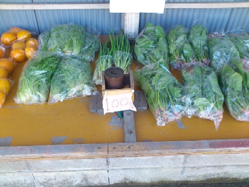 家からシトロエン名古屋天白までの出勤経路に週2回ですが、無人の野菜売り場がありずっと買ったことがなかったですが、最近は買ってます。消費税込みで100円ということもあり、安価な気がするし間違いないのは新鮮です。夏でも冬でも1年を通して販売してるので、いろんな野菜を買うことができます。おつりが必要な時は、無人販売所なので無理です。その時はどうしたらいいのだろうか?