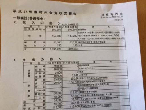 本日の町内会組長会議は夜9時過ぎまで延々と続きました。なぜかといいますと、いろんな役を決めないといけなく単純に組長だけやればいいということではなかったのです。19年前とは状況が変わってました。話しを聞けば、すごく活動している町内会で福祉に関しては来年度からモデル町内になるそうです。そんなことより、会合に出なくてすみ朝の交通誘導で旗振りもしなくていいのは会計・・・だったのです。よって1年間は役員になってしまいました。