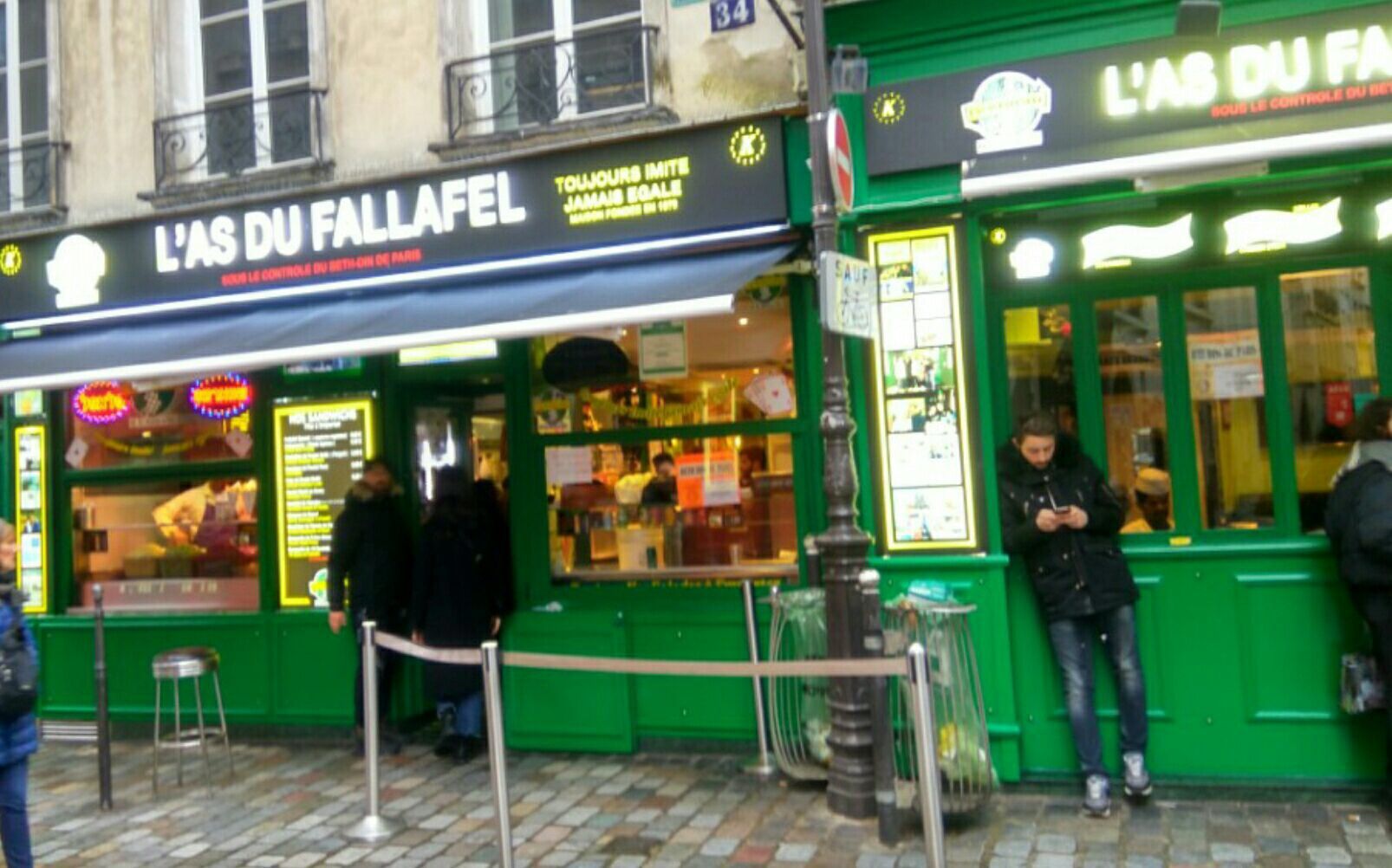 ラズ・ドュ・ファラフェルというサンドイッチのお店です。大変な人気のようで、観光客はもちろん地元パリ市民にも人気があります。外食物価の高いパリのど真ん中のマレ地区でわずか6ユーロでお腹一杯になれるという表現です。行ってみたい、パリに行ったときには。すごい行列みたいですが、ジャンシャルは並んで食べたのかな?写真では行列は見あたりませんが、時間帯で穴場があるのでしょう。