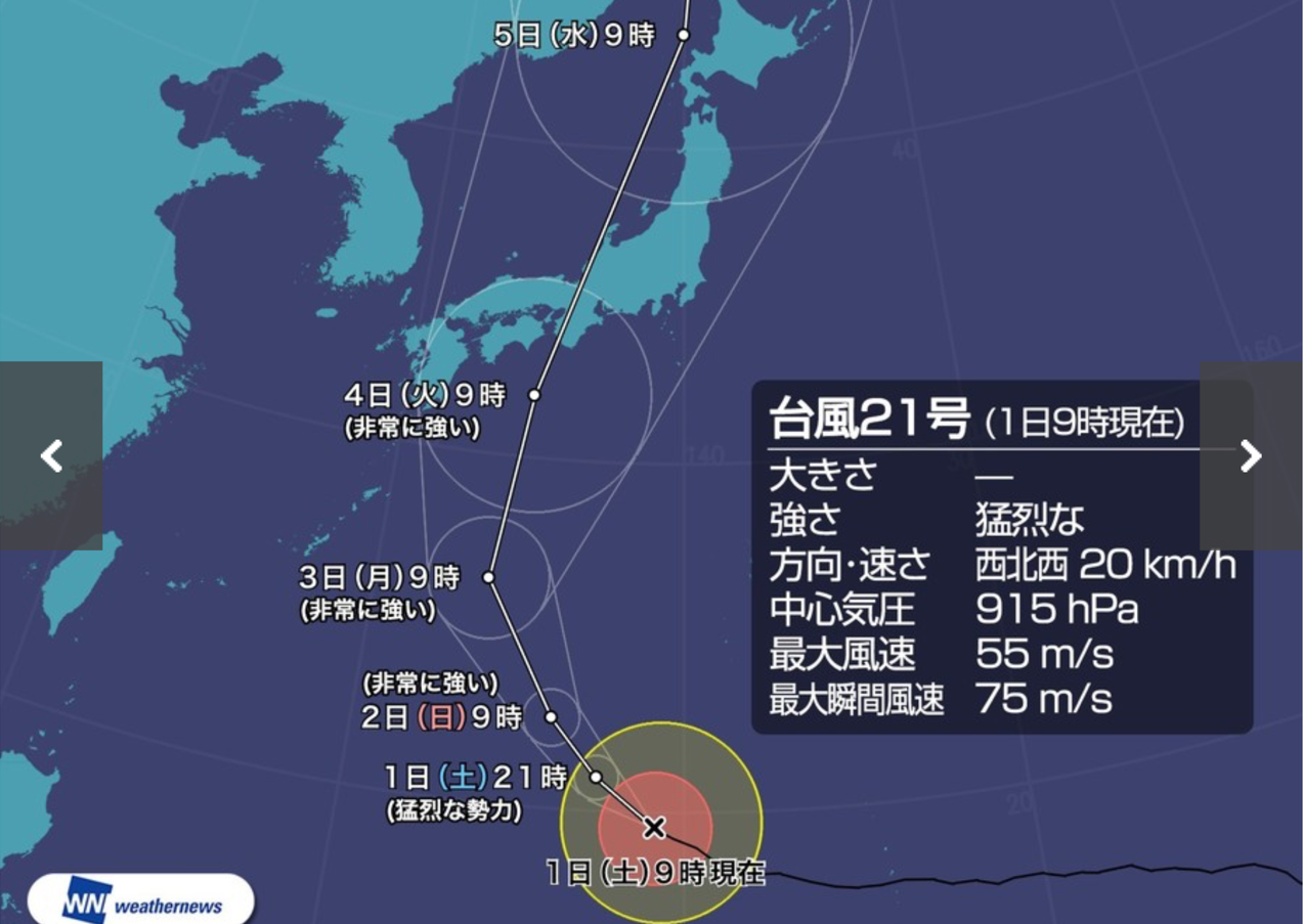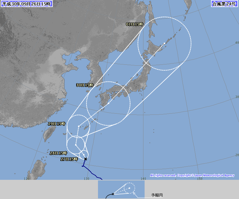 またまた、来そうです。 この台風24号。先週からの雨で、中学校の体育大会の練習日はずっと延期になってましたが、本日は雨が降る前に練習なしの本番となりますと、朝、メールが届きました。これで体育大会は終えることができましたが来週は台風ですね。今年は本当に多いです。