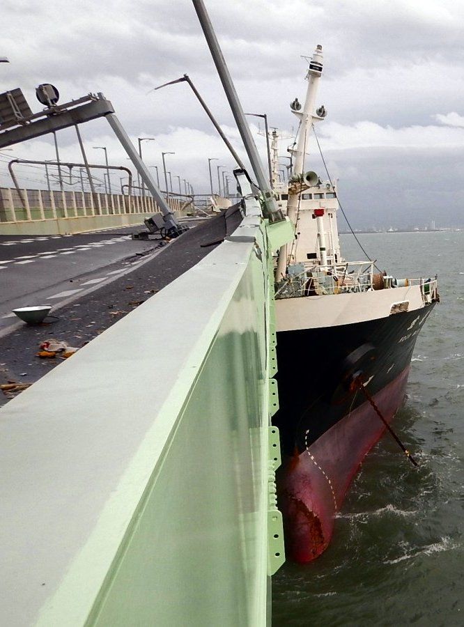 いかりを引きずる「走錨(そうびょう)」状態に陥ったタンカーの船長はどんな気持ちだったのかと思うと恐ろしい事です。もちろん、こんな経験はしたことはありませんがどれだけ今回の台風の勢力が大きかったということを物語っています。凍った路面でコントロールを失ったクルマと同じような状況で風に押されて橋に激突でケガ人が出なかったのは不思議ぐらいです。おそらく橋はすでに通行止めになっていたと思われますが船の乗組員への衝撃はすごかったのに違いなしですが。風に対してタンカーの向きを変えるのもままならずだったのは残念です。