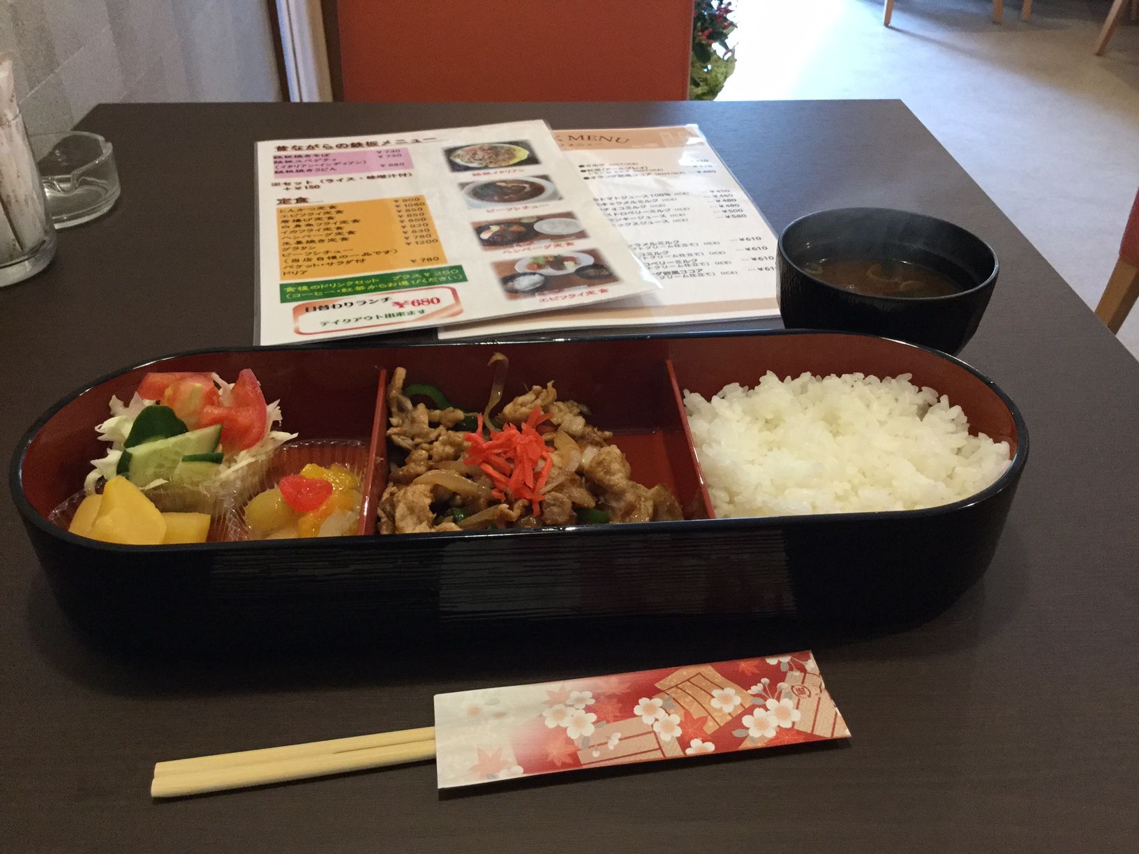 今昔ものがたりにて「本日のランチ」を食べてきました。朝8時のオープンはどんな感じだったか不明ですがその後は順調にお客様が入ってるように見えます。そして今日は自分で作ることなく昼ご飯を食べようと思いランチを食べてきました。あたりまえのことですが、出来上がった物が出てくるのは楽ちんでいいです。メニューは「生姜焼き」です。近所の人も多く来てくれているようで。出足は上々です。
