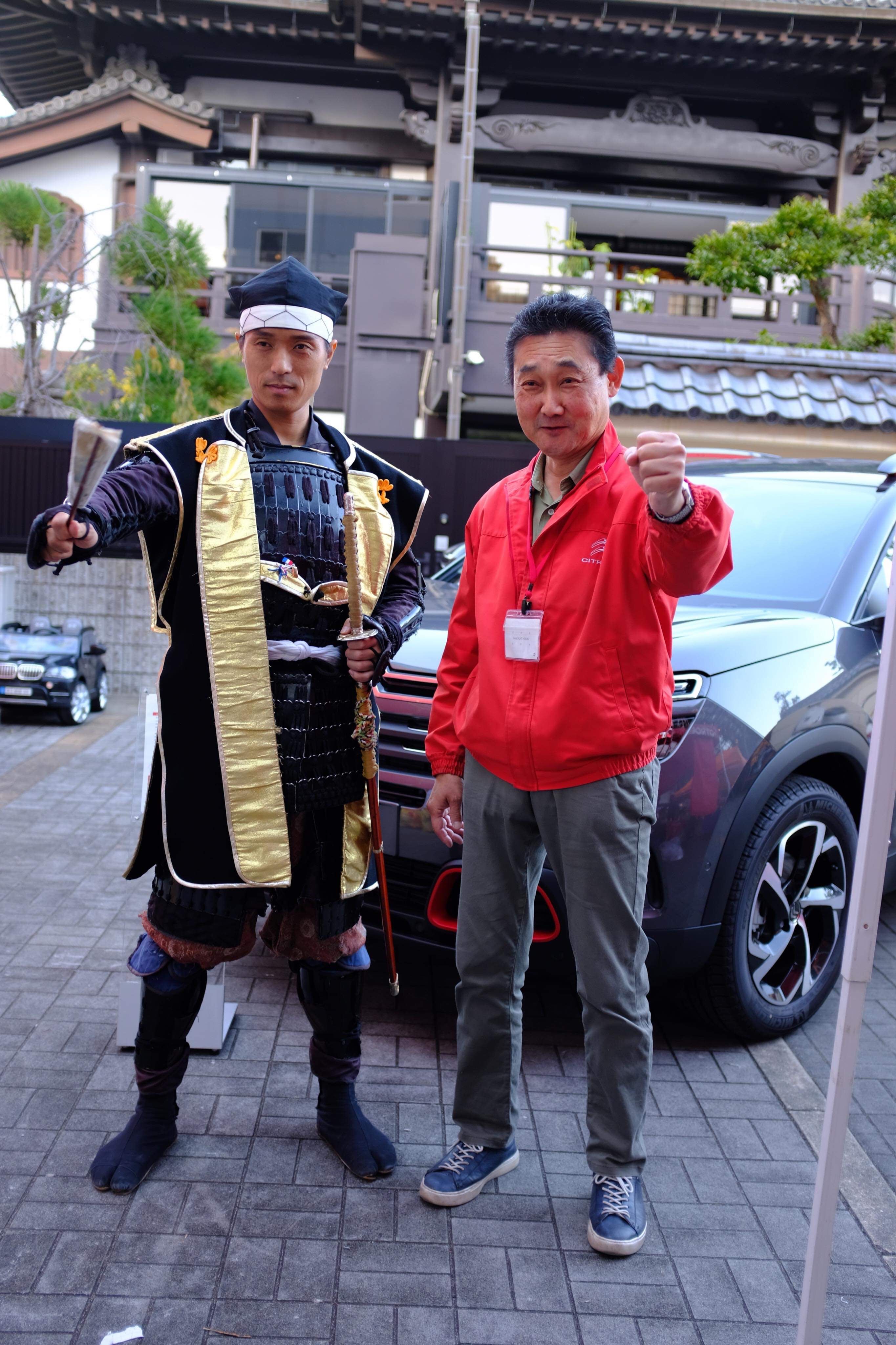 パリ祭での再会です。前回はすでに6年前の事です。ちゃんと覚えていてくれました。今回はお城への納車依頼はありませんでしたがC5エアアクロスに乗り込んでいただき普段のお馬さんとの違いをわかってもらえたと思います。雨降りでも、濡れることないと・・・・