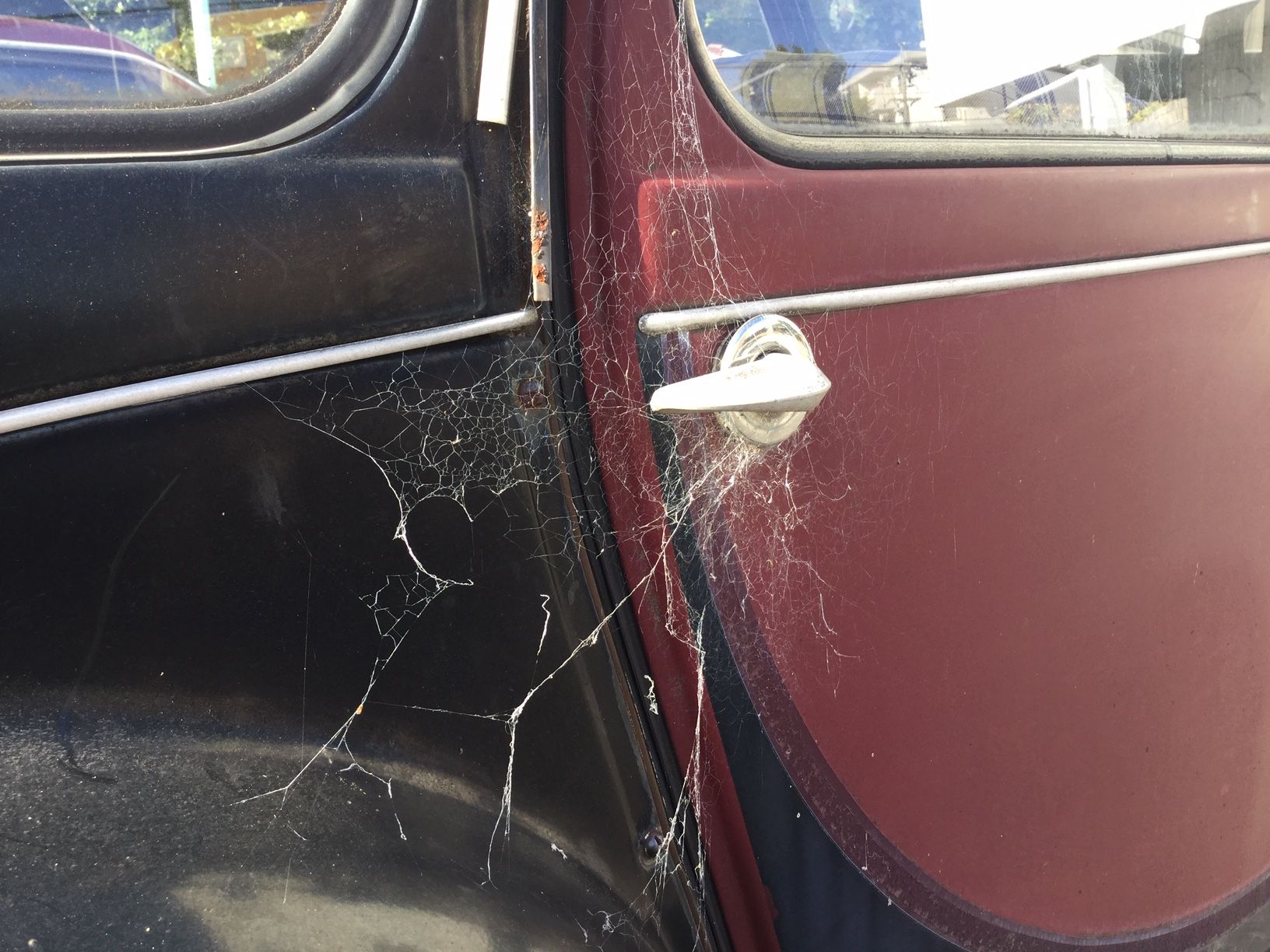 本日の入庫車は2CVです。何年も洗車はしてないと思える(間違いなし!)外装の状態です。先回の車検時には、どんな状態だったのかは忘れましたがたぶんなかったとはずです。ちゃんとエンジンがかかり、車検も受かってますが今回は不動になり入庫です。どうやらセルモーターの不良と思えますがクランクでエンジン始動して入庫です。26年前に販売した(中古車で)ときは光っていましたが歳月と共に変化していき、古いクルマの雰囲気が強く出てます。なので、直してお返しするときも洗車はせずにこの状態を保ちながらの方がいいのではと察し?てます。