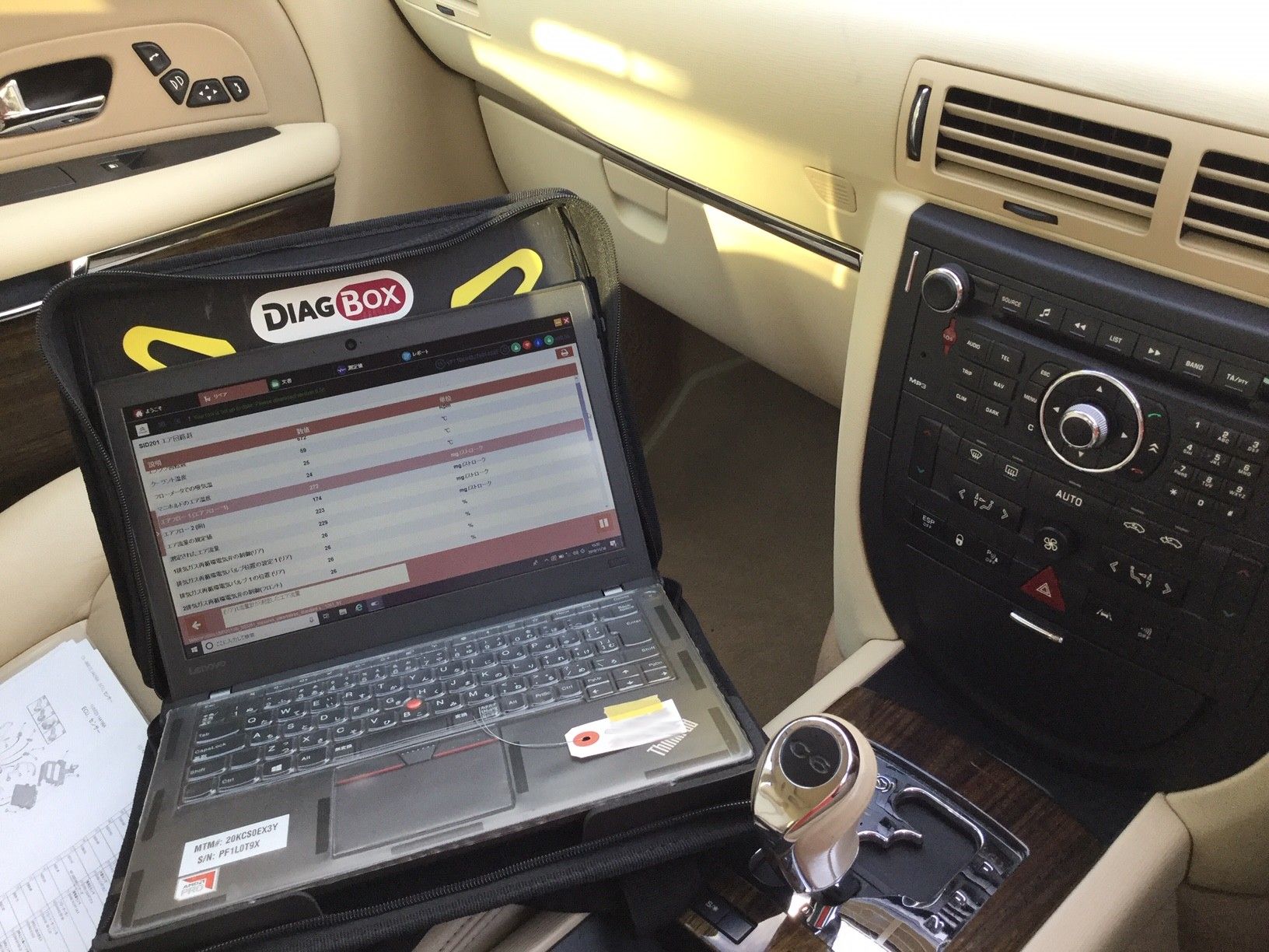 うまく本調子が出ないこのクルマの解明のため診断機を繋いで走行中です。走行中のあやしい箇所のパラメーターを見ながらの運転ですが、それが・・・パソコンの画面が小さくて数字が見えません。(老眼の原因もありますが)しかたなく左手で診断機をかかえながら、数値の確認です。正常な動きしてるんですが、なぜだろう?本日はここまでで、終了です。2人ペアーでやらないと難しいような?