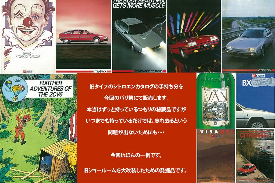 きちんと管理してなかったので何がどれだけあるのかわかりませんがおもしろそうな物がいっぱいあります。その一部をお見せします。本当は旧ショールームは古いシトロエングッズやカタログと旧モデルの部品を並べて同じ年代の思い出となるような家電(実際にはパソコンになります)とかを同時に並べた、小さな博物館を作ろうと思いましたが何もできずにテナントにしてしまったのでお宝放出?を予定してます。片づけするときに、お宝だと思いこんでた歴代のパソコンもすべて処分してしまったのでもう、博物館は諦めです。PC9801 PC9802 iMac PowerBook PowerMac Performa630 DOS/V機多数 VaioC1 これ以上は思い出せない・・・