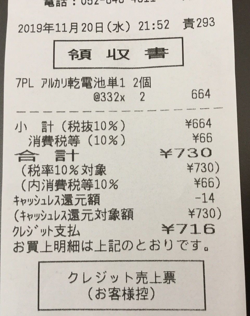 この失敗は、実は3回目になります。ガス台の赤ランプがだいぶ前から点滅してたので電池交換をしなくてはいけなかったですがついついまだ大丈夫と、使い続けました。が、今晩とうとう息絶えました。晩ご飯となったラーメンを作っている最中です。野菜と肉を炒めているときにです。スープは途中で火が消えても問題ないでしょう。麺をゆでてる最中じゃなかったのが良かったです。子供にむかえのコンビニに行き、買ってきてもらいました。次の事も考えてか、電池2本ではなく4本買ってきたので次は大丈夫です。そこでわかったことが・・・キャッシュレスだとちゃんと還元額が表示されてるにだと。現金より、いいじゃんとなりますね。