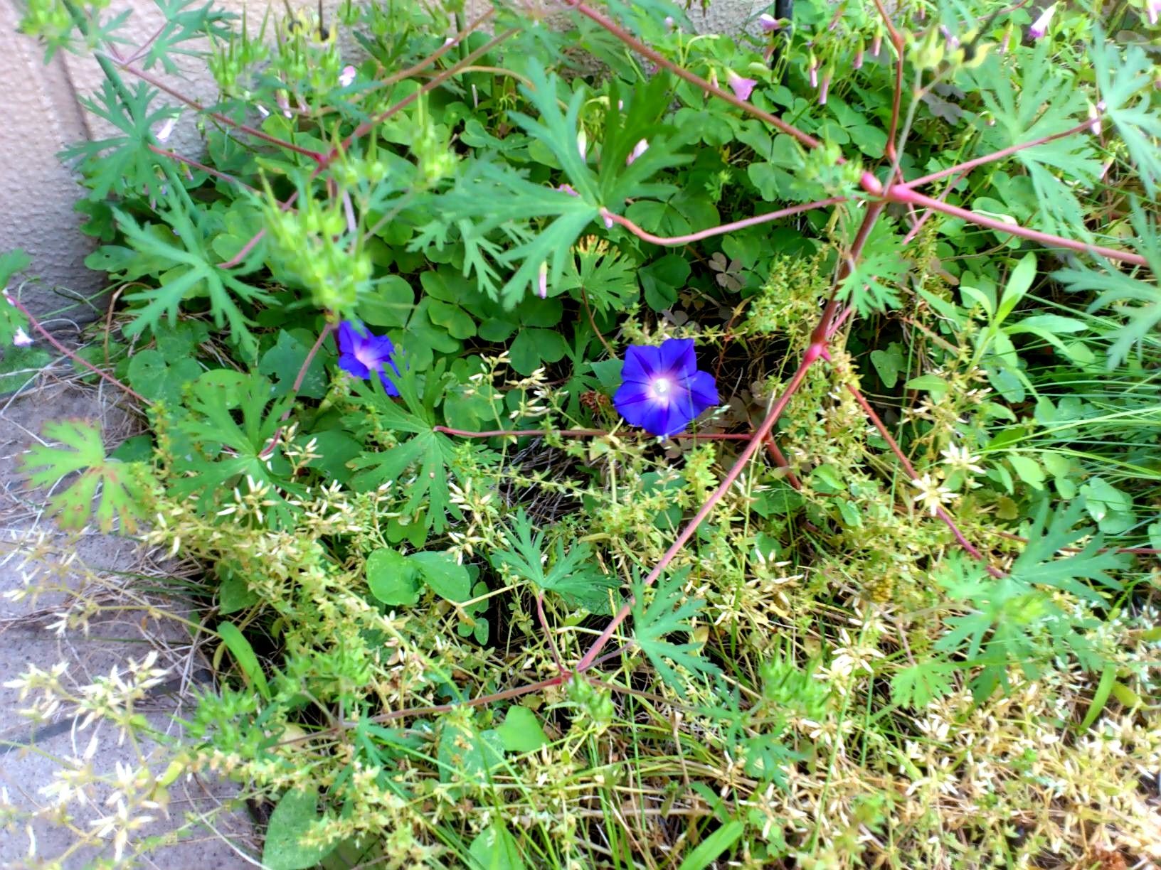 自宅の小さな庭の「あさがお」が咲きました。いつもより少し遅い気がしますが、夏の始まりです。何の世話もせずにほかりぱなっしですが、ちゃんと咲いてくれます。芝がちゃんと生え揃ってくれるといいですがそうじゃない種類の草が伸びてきて、よくある空き地化しないようにはさみをいれてやらねば!