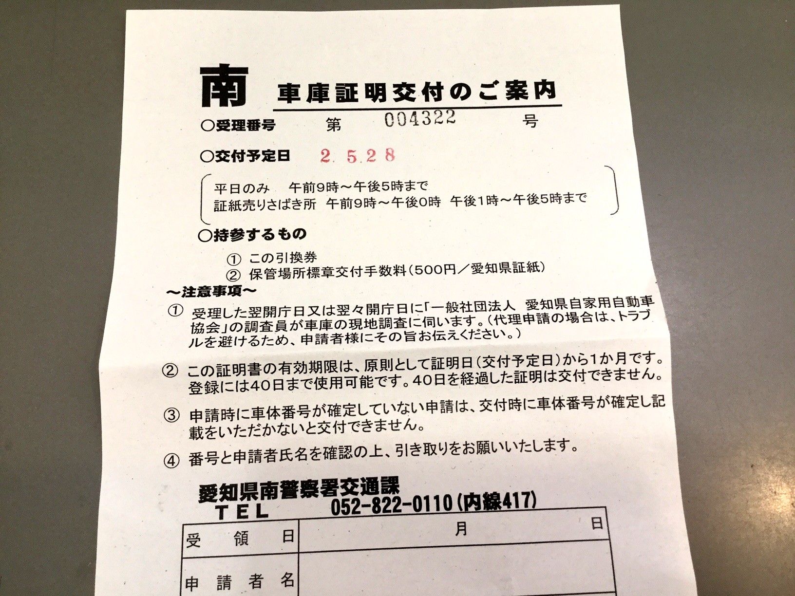 定休日だけど、やれることはやっておこうと天白警察署へ車庫証明申請です。ここは南区とは違い、普段通り!なんとなく和やかな感じがする天白警察署でした。交通課もね!