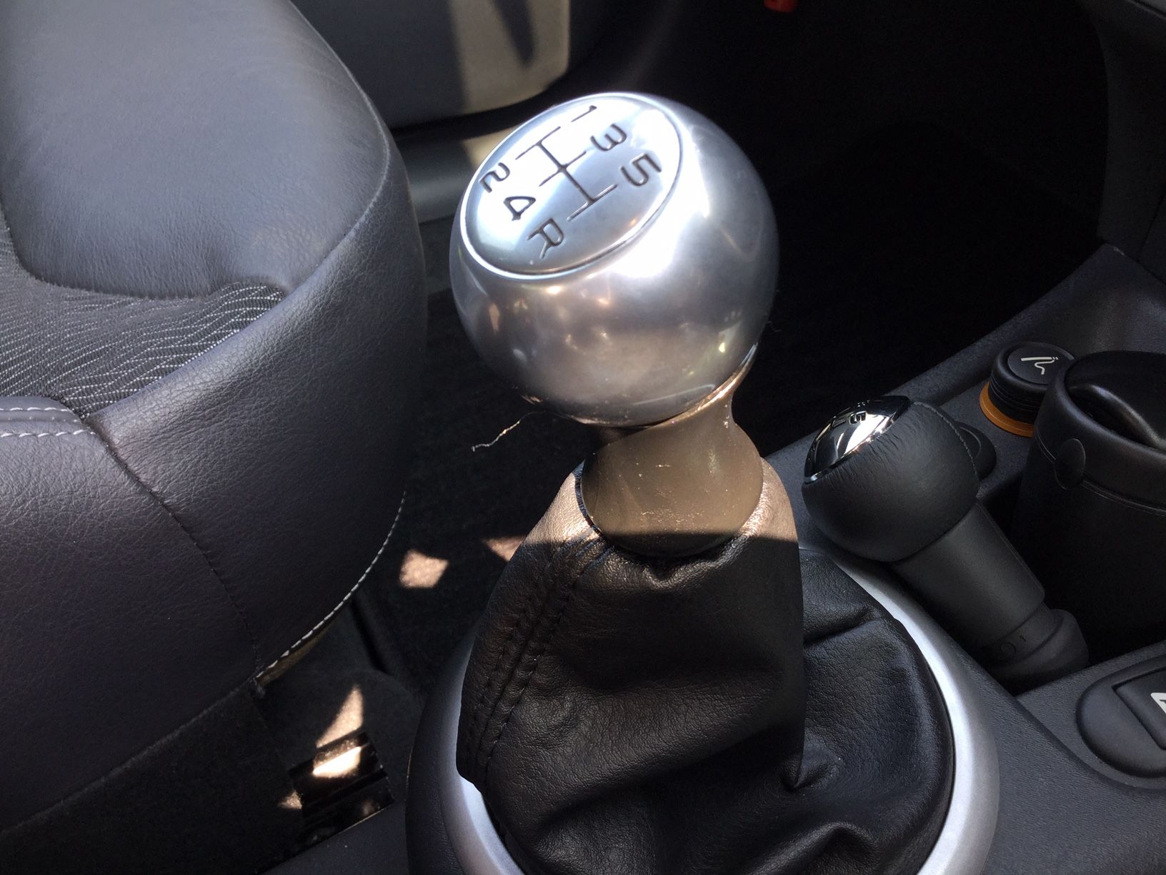 預かった時は、ここまでではなかったと思いますがセルモーターがバックオーダーとなり1ヶ月後に返すときにはこの暑さは、シフトノブの根元をむしばんでました。エンジンがかかり、試運転する最中にもなんか遊びがあるなと思ってましたが、バックギアに入れるために違う方向へシフトレバーを動かしますと、シフトボールが少し持ち上がりました。おぉ・・これはまずいと思い、シフトボールを握らずに根元を持ってギアチェンジをすると、悪いことが起きました。頭でっかちのシフトレバーの根元のつまんで?動かせば支えがなくなった頭でっかちの首が折れたみたいになり床に転げ落ちたのです。とどめを刺してしまったです。が、まだ部品供給があり助かりました。しかも、今度は頭全体が金属ではなくてっぺんだけが金属で残りは革です。真夏に火傷せずにすみます。まだ2万㎞台のC2VTSですが、樹脂はだめですね。お客様が運転してる最中に首が折れたら「びっくり」するでしょうね。