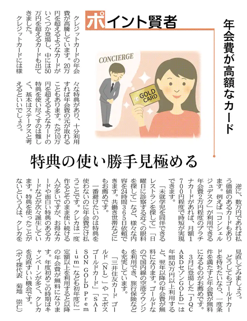 こんな便利な物はないですね。現金は最低限だけ持っていてあとはカード払いすれば、いつ何に使ったかの記録が残ります。あとは調子にのって使いすぎないようにすればいいのです。でも旅行なんかの時は感覚が麻痺しますね。特に海外旅行時には・・・セゾンカードが年会費にやさしい気がします。