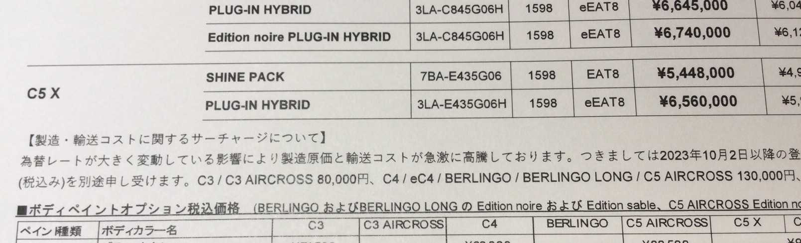 とうとう車両価格を上げることにためらいを感じたのか違う方法で値上げの発表となりました。サーチャージという言葉に置き換えてます。この3年間でものすごく値上がりしました。クルマは待たずにすぐに購入した方がいいということなるという時代に突入です。