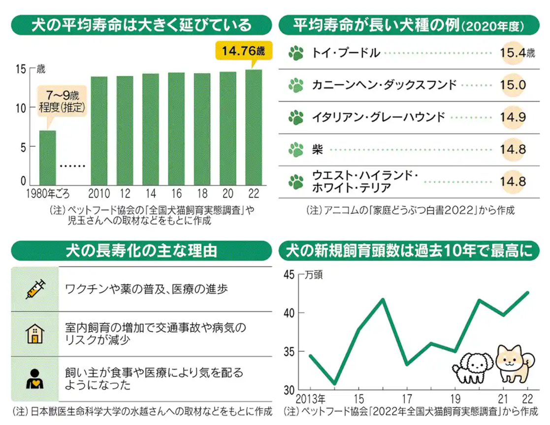 「さく」が亡くなってから、すでに6年経ちますが時々、生きていたら・・どんな悪さをしてくれてるのかなと思うことがあります。この表を見ても18年というのは長生きで間違いなしです。子供の数が減っていますが、犬の数は増えてるということみたいです。確かに動物病院も増えてる?新しく建ってるといえばいいのか?長生きすると人間も動物も医療施設を必要とするんだなと。