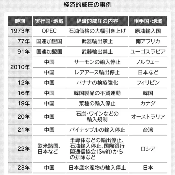 中国の経済的威圧は、なんかやりたい放題に思えるぐらい回数が多いです。それに対して日本は強いとは言えません。残念です。今月、中国へ行こうと計画してましたが観光ビザが必要で条件は行きと帰りのエアーチケットの写しが必要で宿泊するホテルの予約の控えもいるとでした。なので時期を改めます。