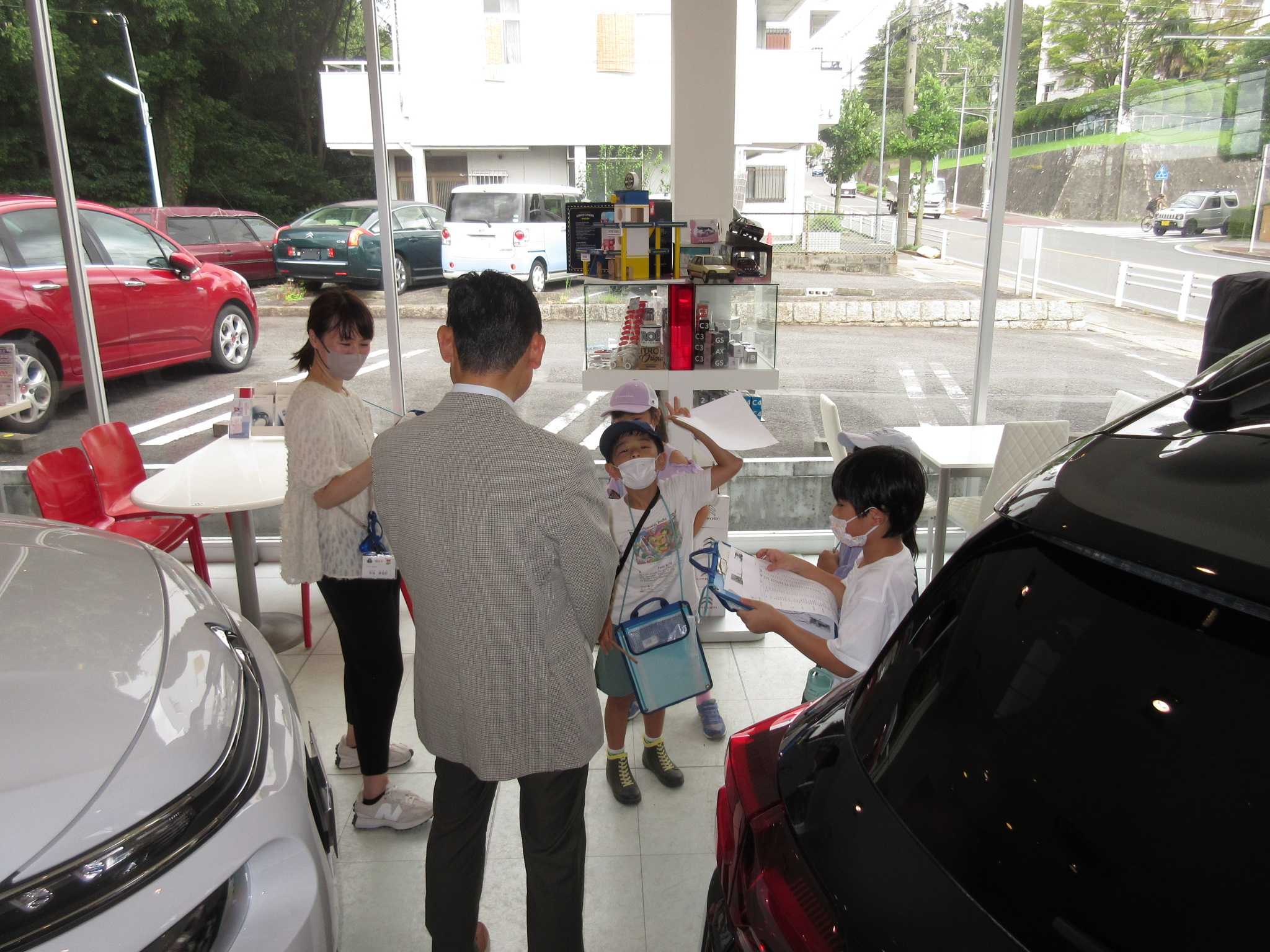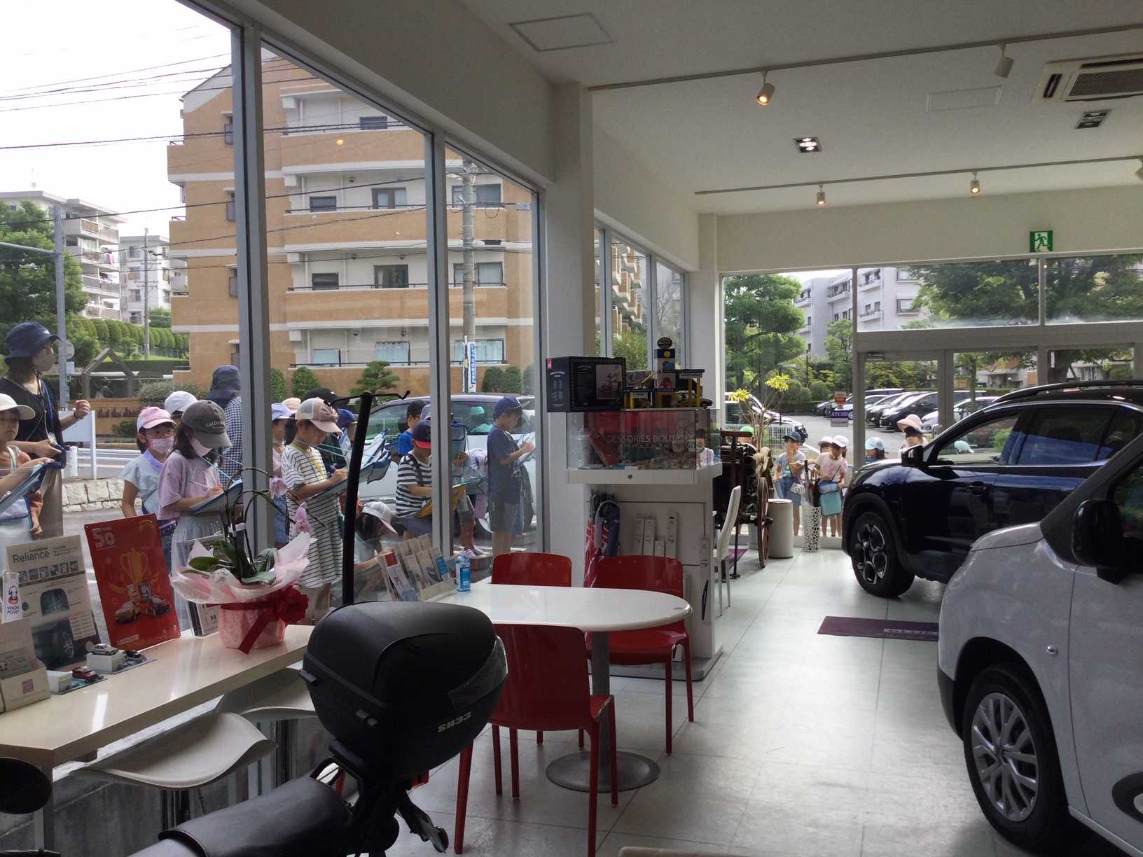 今日は相生小学校の2年生がやってくる日です。予定時刻の11時少し前に4名と先生がショールームにお見えです。例年だと6名でしたが、今回は5名で1名が欠席ということです。シトロエンというクルマの話しをしてパリの話しもしてパリの最新情報については、ジャンシャルに説明してもらいました。1人の子は入り口にある消防ポンプ車に興味がありいろいろ聞いてきました。昭和初期の物と説明しましたが、昭和のこと・・・・わかってくれたかな?