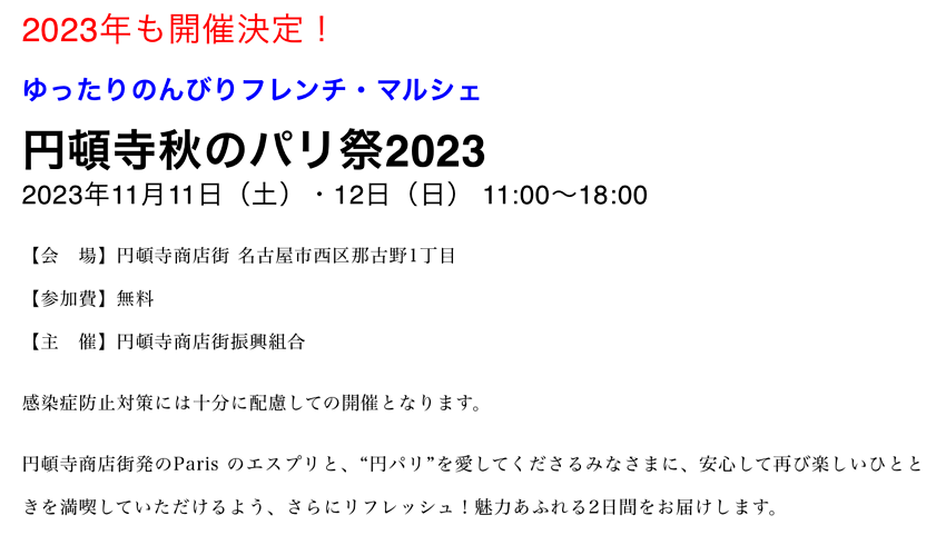 円頓寺秋のパリ祭2023今年度もシトロエン名古屋天白は出店します。
