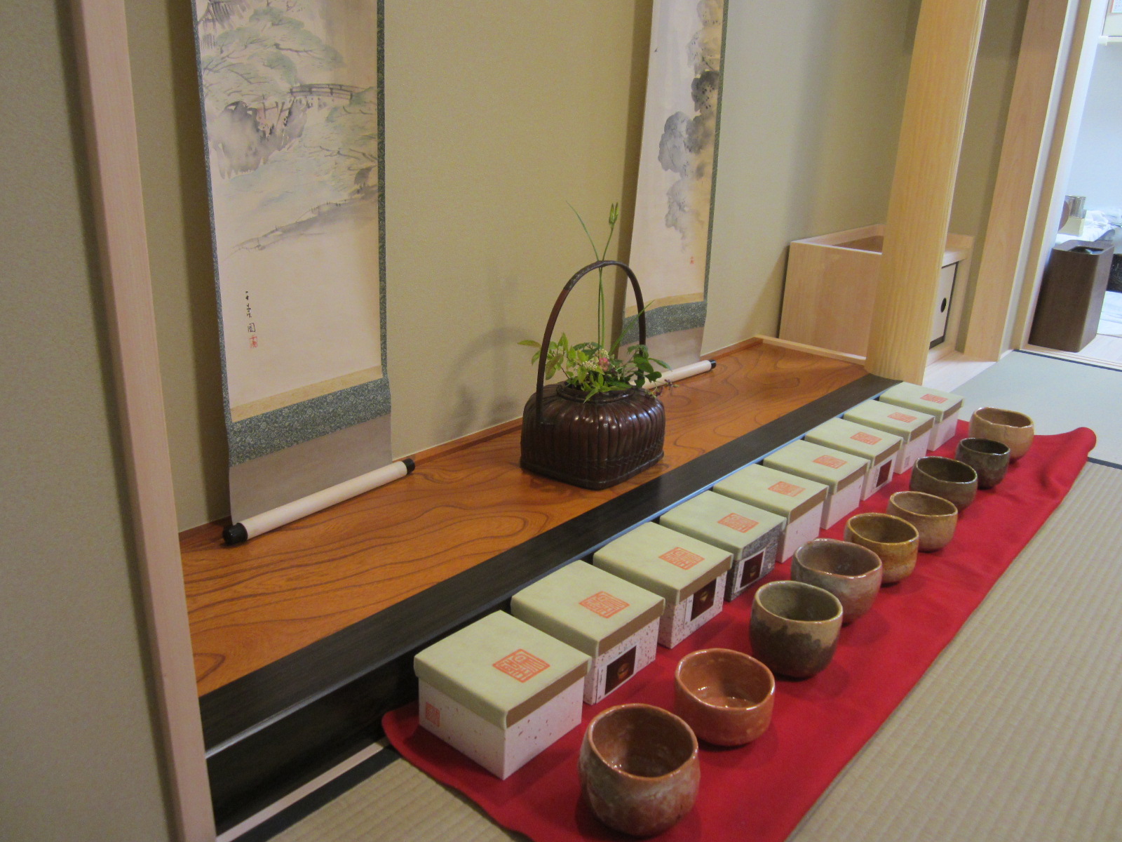 今日はちょっとだけ(そうでもなかったですが)ショールームを閉店してお茶会へ行ってきました。作法がまったくわからずでの参加でしたが顔なじみの方ばかりの集まりでしたのでわからない事は聞きながら、茶扇子も持たずにでした。濃茶は本当に濃かったです。茶室がテレビ塔の真隣りなので、日曜日でお祭りもしてるのか音楽や歌声が聞こえてきましたが、地下街の出入り口から10メートルぐらいしか離れていないビルの1室が茶室となってました。