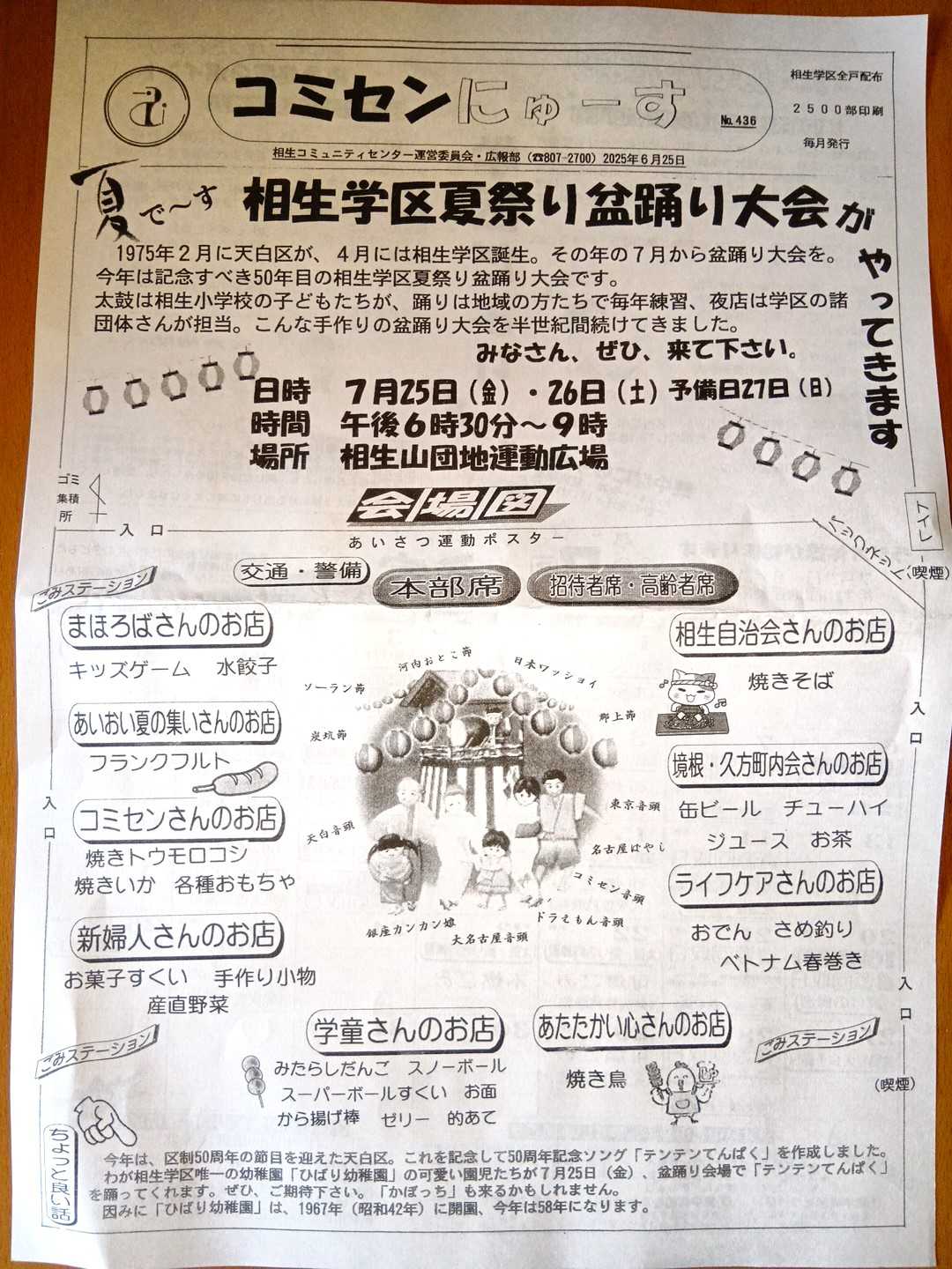 地元の盆踊りの案内がありました。昨年もその前も行ってます。この案内を見て気が付いたことはいままでお酒はビールのみでしたが時代の流れなのかチューハイもあると書いてあります。明日から7月です。月初めの最初の仕事は、少し離れたところまで中古車を取りに行ってきます。