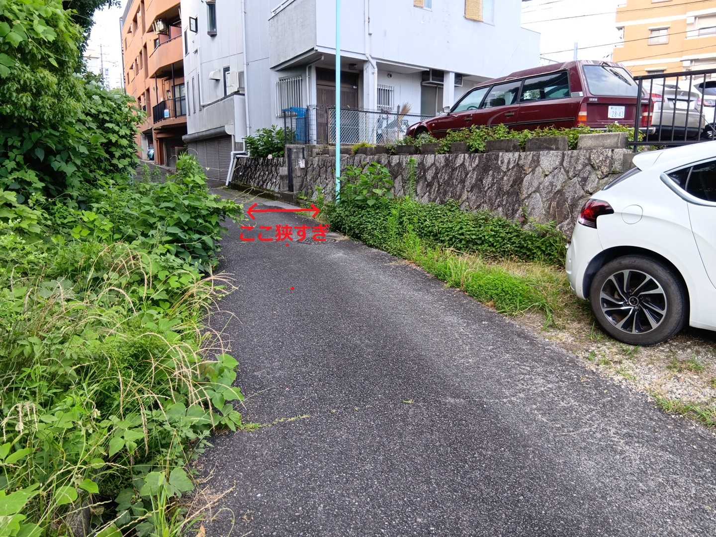 どみにこの裏の道路、ただでさえ狭いのにますます狭くなってました。自然の力に負けています。確か、名古屋市の土地だと思ったのでお願いするしかないですね。