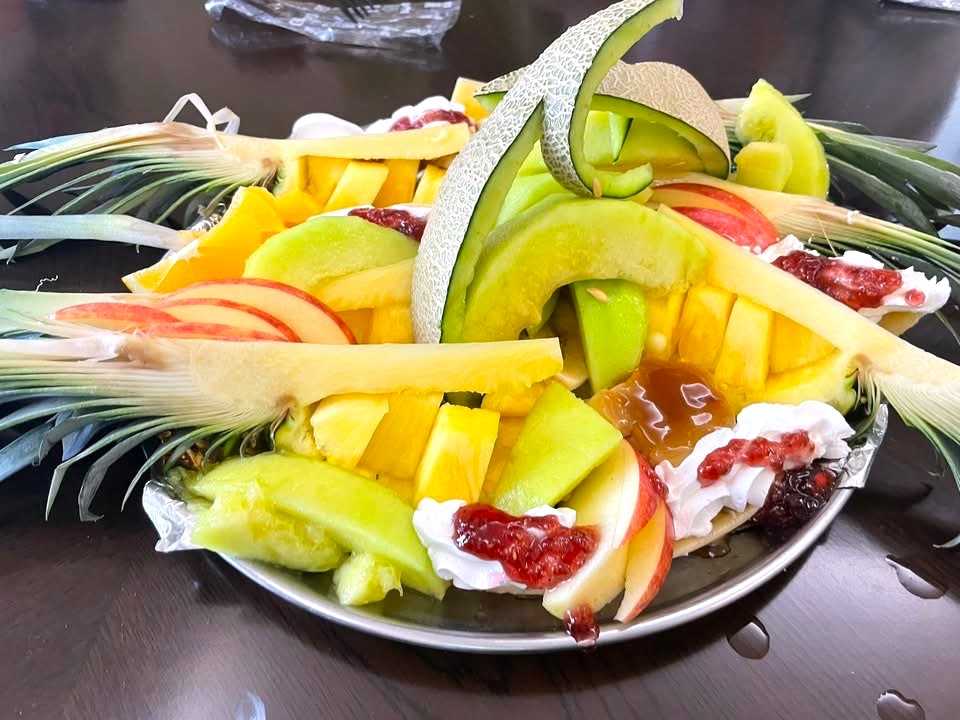 朝11時からの食事会の最終メニューは冷茶を使ったお茶席と室内に入ってからのフルーツとなりました。そのころには、かなりたくさんのビールも飲んでるのでフルーツのカットがかなりぐらついてます。(写真を見るとよくわかります)でも、みなさんに喜んでいただけたと思うので良かったです。やはり、とても久しぶりに作るとこんな出来栄えです。実現までには、まだまだ時間がかかりそうですが自動車の販売&修理の事務所に小さなカフェを併設するのを目標に続けていきます。