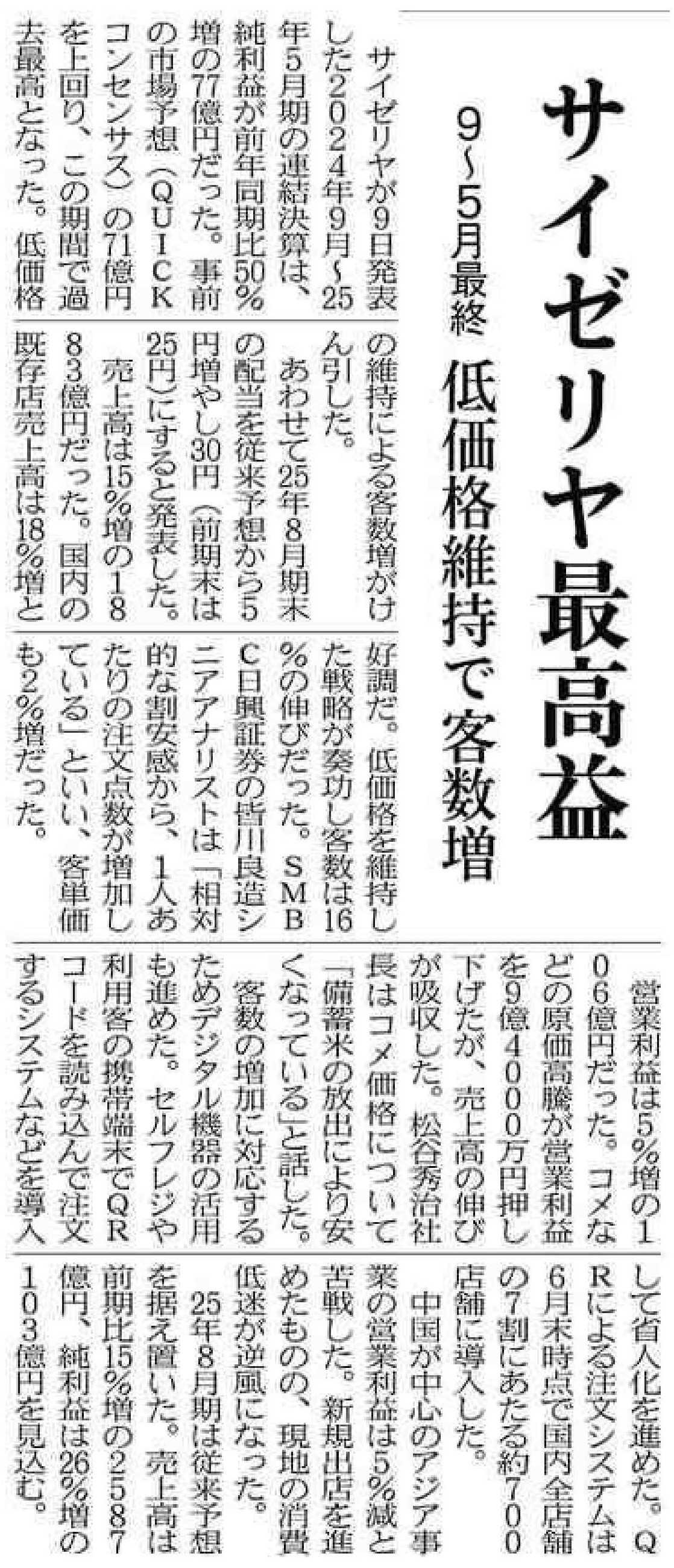 かなり前から「サイゼリヤ」の株を保有してます。業績が良かったというニュースはうれしいです。実際に時々は食事しにいきますし、ワインも飲みます。配当金も上がりうれしいですが、昔のように株主優待券を復活させてくれないかと思う株主は多くいると思うのですが。