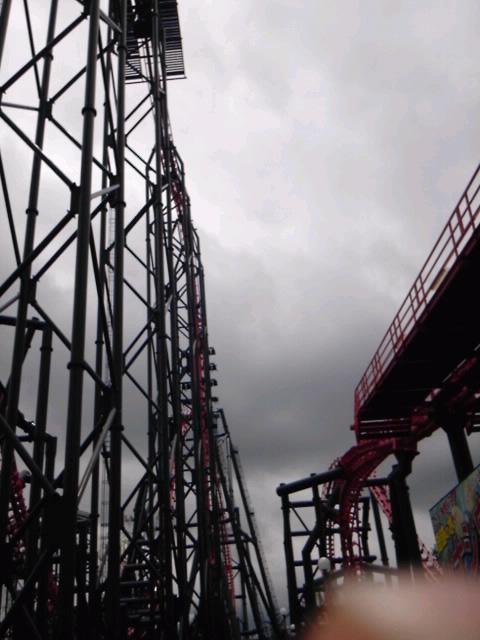 曇り空の中日帰りで富士急ハイランドへ行ってきました。富士急ハイランドの滞在時間は約5時間ほどしかありませんが、平日ということである程度の遊べるかなぁ~とか途中雨が降ってきて絶叫マシンが運転休お止になったらどうしようとか、いろいろ考えながら遊んできました。結果小雨が降り『どどんぱ』『ええじゃないか』など屋外の乗り物がほとんど運休する中、『FUZIYAMA』だけは運転していましたので、3回乗ることができました。また3時以降小雨もやみ止まっていたマシンも運転再開をし、『ええじゃないか』に乗ることができました。ええじゃないかについてはもともと並んでいて運休になるときに搭乗優先券をもらっていて、小雨がやんでもすぐに乗ることができました。7月頃に運転開始をする絶叫マシン『高飛車』ですまた小雨が降っているときに屋内のガンダムクライシスとエヴァのところに行ってきました。最後に一応富士山らしき写真を撮りましたが雲がかかっていてよくわかりませんまた時間が許せば平日に富士急ハイランドにまた行きたいです。