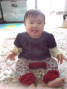 最近、パソコンをななみに占領されとる、どりむすめです(-_-;) よって、ななみが寝付いてからでないと、更新出来んのである。 そして、例によって、やっぱりドリマトーンが練習出来んのである(TOT) 生徒の楽譜も書かなアカンのにぃ いつかきっと・・壊されます・・・パソコンを・・・・・。 早いモノで、ななみはもう9ヶ月になっちまいました 9ヶ月になると~ 離乳食を3回にせなアカン 私でさえ、まともに3回メシ食ってないのに(爆) そんなん、3回もなかなか出来んわぁ~! てなワケで・・ 朝は、私が"朝バナナダイエット"をしよる事を利用して、 ななみも朝バナナダイエットです(笑) ななみは、ヨーグルトが大好物なので、つぶしたバナナにヨーグルトをかけてあげたら大喜びですわ。 朝はそれでOK そして、フォローアップミルクで補ってますわ。 フォローアップは、9ヶ月からの粉ミルクなんやけど、 0~8ヶ月までの粉ミルクより、断然安いけん助かるるるるるぅ~(T_T) ほんで、生意気に、最近グルメ化してきました。 調子に乗って、大人の取り分け料理をあげよったら、 グルメになりやがった(-_-;) 楽しようとして、レトルトをあげたら、 頑なに口を開けん!(ーへー;)←こんな感じの顔で 大好物のうどんとかは、口に持っていく前から口開いとるし!( ̄O ̄)←まぁこんな感じ 歯は、上の前歯が2本、下の前歯が3本になりやした。 そして、ガーゼの拭き取り歯磨きから、ブラシへ変更しやした。 自分で持てる歯ブラシを買ったんやけど、 喉の奥に持ってかんように、カバーが付いとるんやけど、 与えたら、わざわざ反対に持って舐めやがる(-_-;) カバーの意味なし! あ、身体測定。 身長...68cm 体重...8200g 頭囲...43cm ですわ。 ハイ、前より身長縮みました(爆) おっかしいなぁ、先月は70超えとった筈なんやけどなぁf^_^; きっと、いい加減な測り方をしたと思われる(テキトーO型) 体重は、先月より200g増えただけ~。 よっぽどじっとしとらん証拠やな(笑) 頭囲は先月と同じ。 ずりばいを卒業し、ハイハイが完璧になりました。 でも、ものごっつ急いどる時は、たまにずりばい出ます つかまり立ちがヒドイです(笑) 壁でも立ちます。 テレビのトコでつかまり立ちし、テレビを見るので、それはさすがに困った困ったこまどり姉妹。 テレビと言えば~ 最近、音楽に合わせて膝を屈伸し、踊るようになりました(動画参照)あと、やっと「バイバイ」をするようになったんやけど、 意味なく使います。 そして、肝心な時にしません(爆) あと、着替えが大嫌いです。 毎朝格闘です オムツ替えの時も、すぐにひっくり返り、ケツむき出しでどっか行きます、速攻で。 お陰で、今日、ウンチが床に転がりました(爆) そして、人を上手く利用するようになりました(^_^;) 寝る時はママ・ばーば、遊ぶ時はパパ・じーじっちゅー風に。 そして、つかまり立ちをしとる時に、 後ろに誰かがおるんを確認してから、ダイビングしてきます。 そういうトコは、さすが慎重なA型(笑) 怒られるんも分かってきたようで、 数秒後「えーん」と言いますが、涙は出てません(松○聖子か!) てか、可愛くてしゃーないので、私はまだよぅ怒れてません(意外や意外!?) 最近、マサジがリサイクルショップで、歩行器を買ってきました。 これに入れとくと、数分家事出来ます(^^ゞ ま、こんなモンかな。