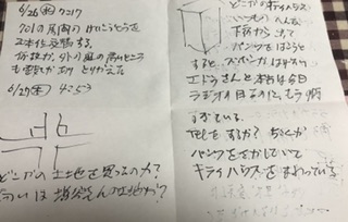 am6時18分テスト時間内に解答できず、名前と口上を書いてだす。9/29am 11時54分アーケード街市川さんのビルのテナントに怪しい食堂があり、先客で古俣ちやんが来ているカツ丼を注文する3人ママがいて、注文しないのに色々の物が届く1000円しかないのでコマちやんに金貸してくれと言うが断られた向かいの客がウナ重を皿にくれた、、ママに名刺を渡し請求書くれと言ってもくれない9/30am03時38分定美が休みで、机の中に多少小銭がある喫茶の売り上げ2000円が無くなっているが山本か盗んで持っていた沢山のダンボールがついたので、増田に風呂場には入らんと聞く伊藤の親父がいる。ダンボールはとなりのリサイクルでも扱うと増田は休憩する