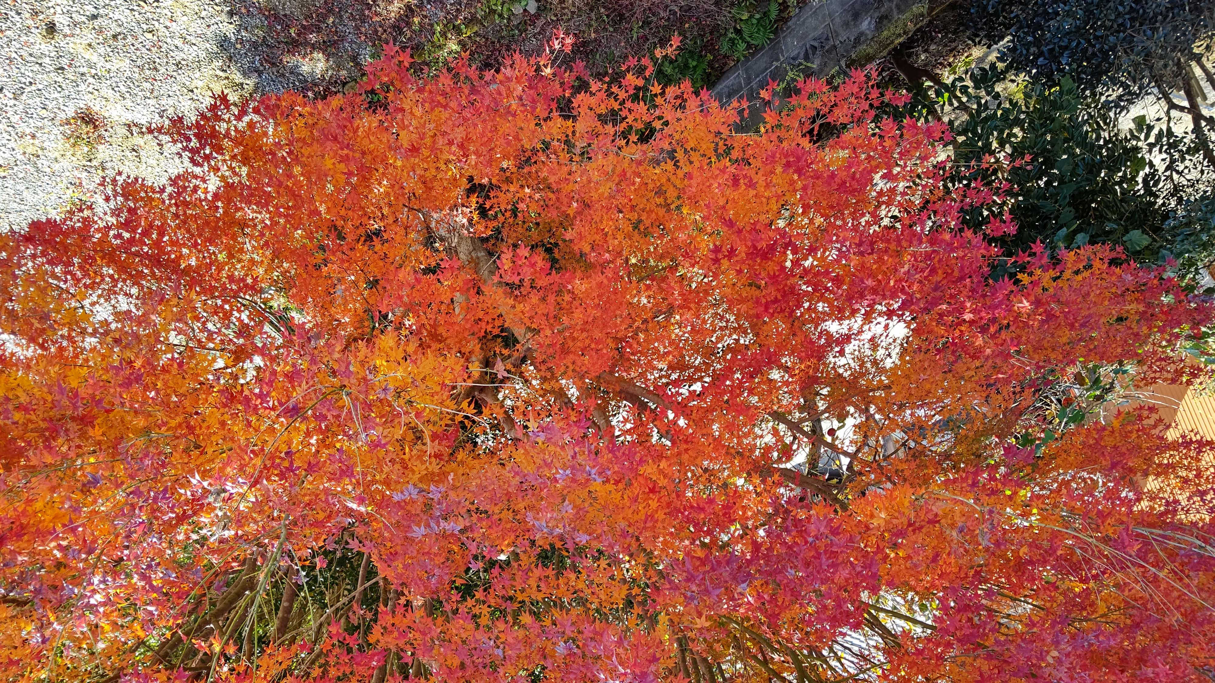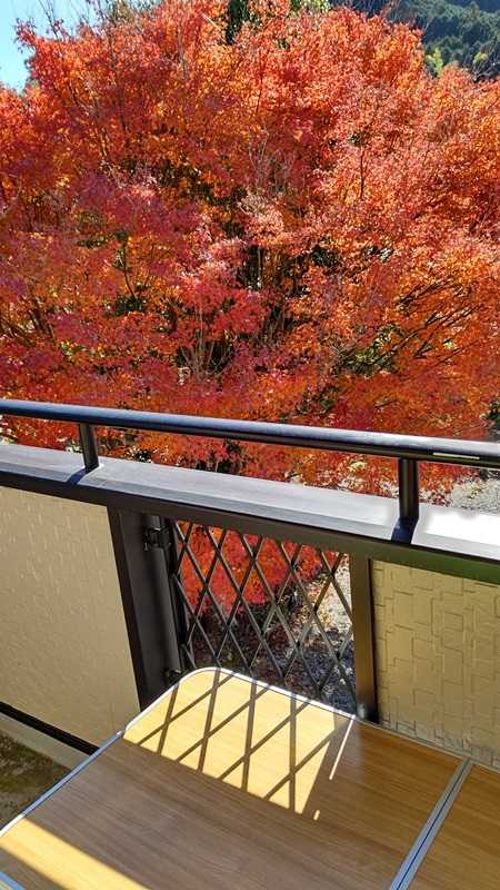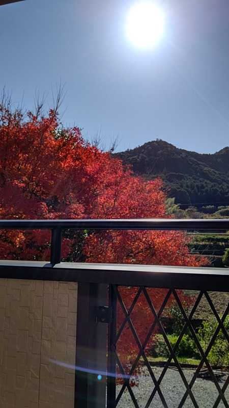 2階のベランダに出てみると、何とも見事なモミジの紅葉である