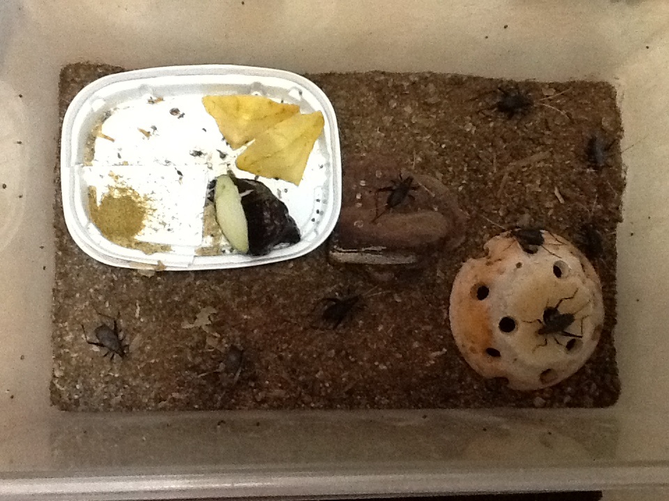 スズムシが大きくなってきたようで、エサも減っているのがわかるようになりました。スズムシのエサは、おいしいのか、目に見えるくらいになりました。梅雨で湿り気もあるので、こまめにエサを交換しています。