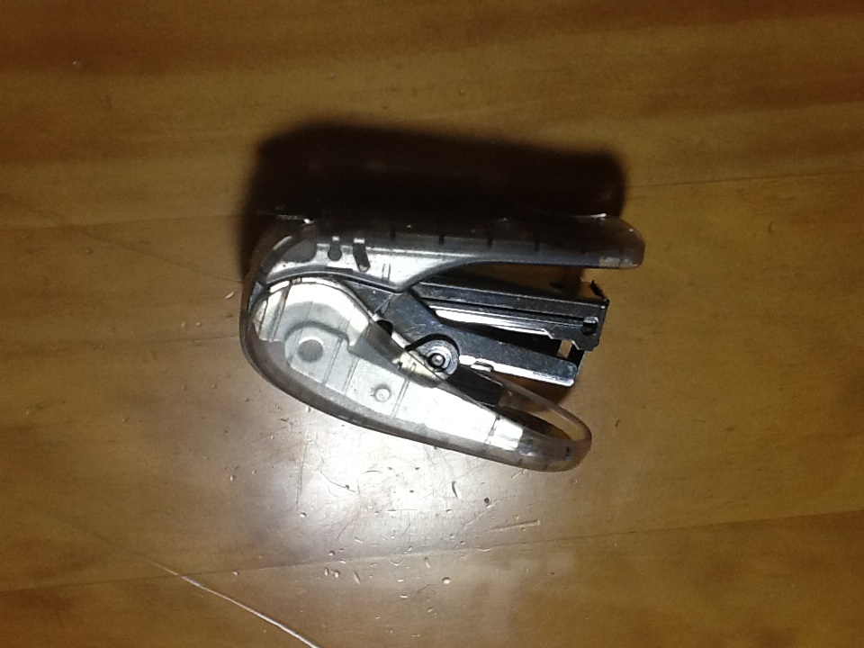 持ち歩きのできる小さいホッチキスがほしくなり、無印にいきました。確かに小さいホッチキスがあったのですが、頼りない気がしてきて普通のホッチキスを買いました。でも、ころんとしていてかわいいですよ。もう、ずいぶん使っているのですが、カチンとしっかりとじてくれます。20枚くらいとじられるでしょう。よくみるとPLUSのものでした。そういえば、PLUSでこういう形の赤いホッチキスがありました。まあまあのサイズですが、わたしは持ち歩いています。