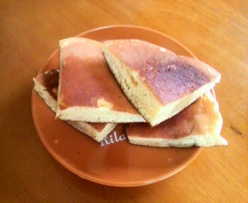 画像のホットケーキは、3枚目のものです。一番焼き色が綺麗だった(大笑)