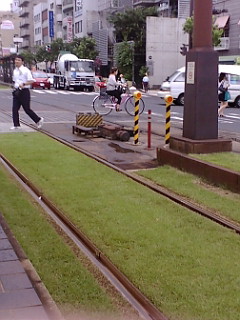 軌道敷内をしばふにすることで、温度がぐっと下がるそうです