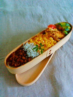 おにぎりだけ作るつもりでいたけど、挽き肉があったので(牛だったけど)簡単に済ませた~