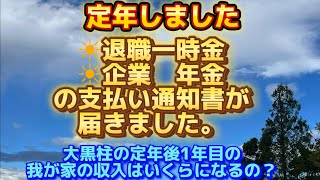 定年1か月が経ちました。勤めていた会社から、退職一時金の明細と企業年金の通知書が届きました。企業年金がいつから、いくら給付されるのかが細かく書かれていました。それをもとに、定年後の我が家の年収を算出してみたら、なるほどね~という額になりました。