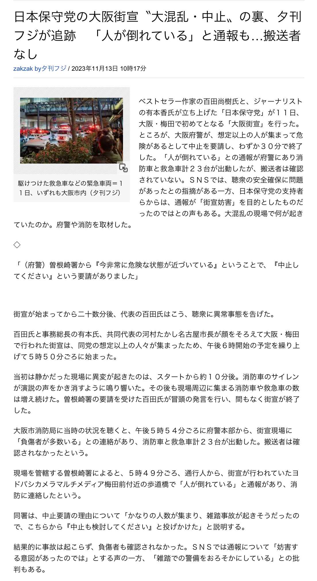 予想通り。やはりこれが目的で人集りが出来易い場所を選び動員かけてムーブメント演出。仙台駅前でこの人集りが出来たら本物だろうが、政治的意図で参政党潰しが目的だからどんどんニュースサイトに載る。また踊らされるだろう。本当に日本の為にやってる人々はニュースにも載らない。報道しない自由の乱用で存在そのものが無視される。石濱さんも本物の愛国者だから似非保守集団によって今回隠蔽されてしまった。参政党と石濱さんの日本保守党を同時に潰す作戦だと見抜ける者はごく僅かだろう。参政党もこれまでの他の集団の様に内部崩壊か。ポンイチの名前を宣伝するが日本改革党はガン無視のポンイチ信者も似非保守。日本には本当にこの国を救える人材が少な過ぎる。この国はやはり亡国だ。日本人滅亡後も土地としては存在するがこの豊かさは消え去るだろう。愚か者共は日本の豊かさを生み出す元が何かを全く分かっていない。日本が災害でボロボロになって見る影も無い途上国になる。それを本気で阻止したい人材が少な過ぎる。