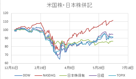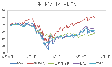 様子見(持株なし)。 持株 = なし S&P = 3,097.74 ( - 17.60 , - 0.56%), DOW = 25,871.46 ( - 208.64 , - 0.80%), NASDAQ= 9,946.12 ( + 3.07 , + 0.03%) 売却済銘柄銘柄から面白そうな銘柄を捕捉。 AMZN、ORCLが上昇。時間外は全て下落。 AAPL(NASDAQ、7/27-8/2決算発表)は ー 0.57%、時間外で ー 0.76% MSFT(NASDAQ、7/16-20決算発表) は ー 0.60%、時間外で ー 0.20% AMZN(NASDAQ、7/22-26決算発表) は + 0.79%、時間外で ー 0.22% TSLA(NASDAQ、7/21-26決算発表) は ー 0.30%、時間外で ー 0.90% ORCL(NYSE、9/8-13決算発表) は + 1.32%、時間外で ー 0.88% CRM (NYSE、8/19-23決算発表) は ー 0.38%、時間外で ー 0.51% VIXは30台継続。WTI原油先物も30台継続。 ドル円 - 0.07 (- 0.07%)(106.89) 原油先物 + 0.61 (+ 1.57%)(39.45) ダウ先物 ー 358 (- 1.49%)(25,513;差分のみダウ終値比較) 日経先物 - 189 (- 0.84%)(22,290;値・率は前日終値比較) (BTCはー0.11%、金先物は+0.20%、VIXは+6.62%) (BTC円は\994,950/BTC,約$9,308/BTC) (VIX=35.12)