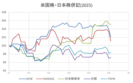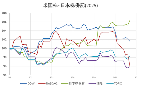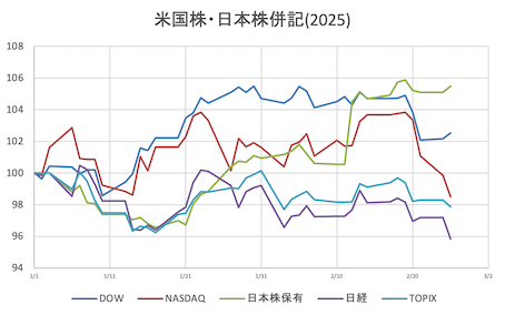 様子見(持株なし)持株 = なしS&P = 6,117.52 (- 26.63,- 0.43%)DOW = 44,176.65 (- 450.94,- 1.01%)NASDAQ=19,962.36 (- 93.89,- 0.47%)売却済銘柄から面白そうな下記銘柄捕捉NASDAQ=AAPL,MSFT,AMZNNYSE =ORCL,CRM(↓括弧内は決算予定日)AAPL(4/30-5) +0.39%、時間外-0.06%MSFT(4/23-28) +0.53%、時間外-0.12%AMZN(4/28-2) -1.65%、時間外+0.04%TSLA(4/23-3) -1.71%、時間外-0.28%ORCL(3/10-14) -3.04%、時間外-0.10%CRM(2/26) -1.88%、時間外+0.07%VIX (15.66,+2.55%)WTI原油先物 (72.38)ドル円 (149.553)CME日経先物(38540,日経平均終値-138)