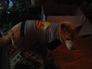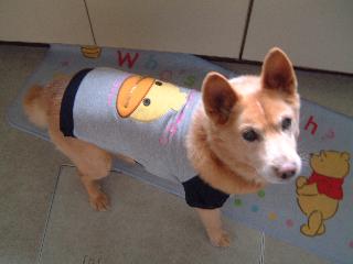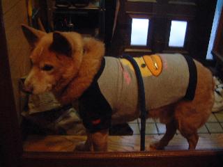 今朝翔様の服が届きました♪散歩に間に合ったので早速着せてみると・・・・ビチビチ(汗;ちゃんとサイズ測ったのに、少し大きいはずですよ翔様。着せる前はお決まりの抵抗して噛みつくし・・本気で噛んでませんよ。でっ、着た姿はこんな感じです。ちょっと?結構小さいです、これ中型犬用なのに何故?上から見るとこうです↓翔様・・・太りました?何で小さいの?でも、寝る時寒いから着て寝て下さい・・・違うの買いますからそれまで着てて下さい。正面から見たらピエロみたい、肉余ってるし・・・。大きいはずなんだけどなぁ~。それより翔様、舌出てますよ。