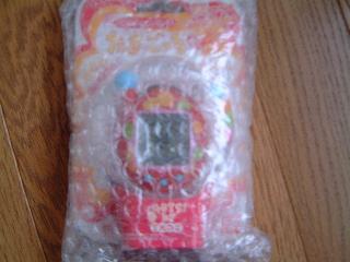 ついにエンたまゲット出来ました♪昨日、日記を書いた後電話魔になりかけまくっても何処にも無い・・・「本日入荷したんですけど売りきれました」と言われ諦め半分でドン・○ホー○に電話したら「たった今入荷しました」と言われ「今すぐ伺います」と電話を切り急ぐ事約30分到着!入荷した数12,3個と言っていましたがレジの後には6個あったかな?でも、買えました♪これで~す♪本当は「ガッツぶるー」が欲しかったけど、「ビーズれっど」「ビーズほわいと」「フリルぴんく」の3種類だったので「ビーズれっど」を買いました。で・・・喜んで家に帰ってご飯したくをしてからメールを見たら何と・・・掲示板で募集していたエンたまの方から取引できますとメールがあってもう1つエンたまゲットです・・・しかも、同じ色・・どうしよ。2個あっても仕方ないし・・・う~ん・・・考えよ。全体の写真はこんな感じです。これが2個ゲットと言う事になりました・・・。翔様もあきれてます・・。あきれて暗闇の翔様炸裂。そう言えば、もうすぐ縁起の良い切り番がくるなぁ・・・。皆様!こちらのショップ「はぴねすくらぶ」で本日18時と21時からエンたま再販します♪こちらは18時からこちらは19時からです。こちらは20時からですこちらは21時からです。こちらは22時からですこちらは23時からです。