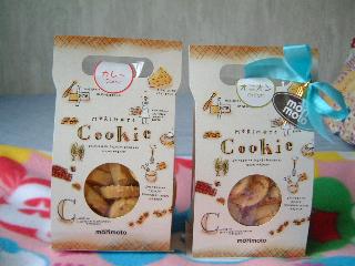 「きょうでしね~おんなのば~しゅで~ってやちゅでしの。」そうなんです、今日9日は私の誕生日です。昨日は母でした、6月生まれ3人いるんですうち。誕生日と言っても家では何もしないので実感無いですが良い事があるかな?と思ったらバス乗り間違えるし、雨酷いし。去年の誕生日より良いか~去年は人生で最悪の誕生日でした。女王様&叔母(女王の祖母で母の妹)が「家出だ!」と言ってうちに来てそれ以来女王が居座った事件・・・あの日、お嫁さん・・ってまだ弟と結婚前だったけど家にいたんです。それで、母は仕事が遅番!ご飯したく8人分1人で作りましたよ!!座ってる暇が無くて自分のご飯中身の無いおにぎりを動きながら食べていたのを覚えてます。「自分の誕生日なのになんでこんな最悪の日になるんだろう」と涙出そうになったり・・・はぁ~しんどかった。今日は、去年と違って平和ですね~翔様は「おっさん、マンマよこせ。」と居座ってるし 無くなるまでいます・・・人が食べてる物って美味しそうにみえますからね。 奮発してクッキー買っちゃいました♪森もとの「オニオンクッキー」と「カレークッキー」です。オニオンは食べた事がって袋開けた瞬間、玉ねぎの匂い凄いです、でもこれがまた美味しい♪カレーはお初ですね~。