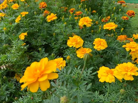 夏野菜のコンパニオンプランツのマリーゴールドの株が