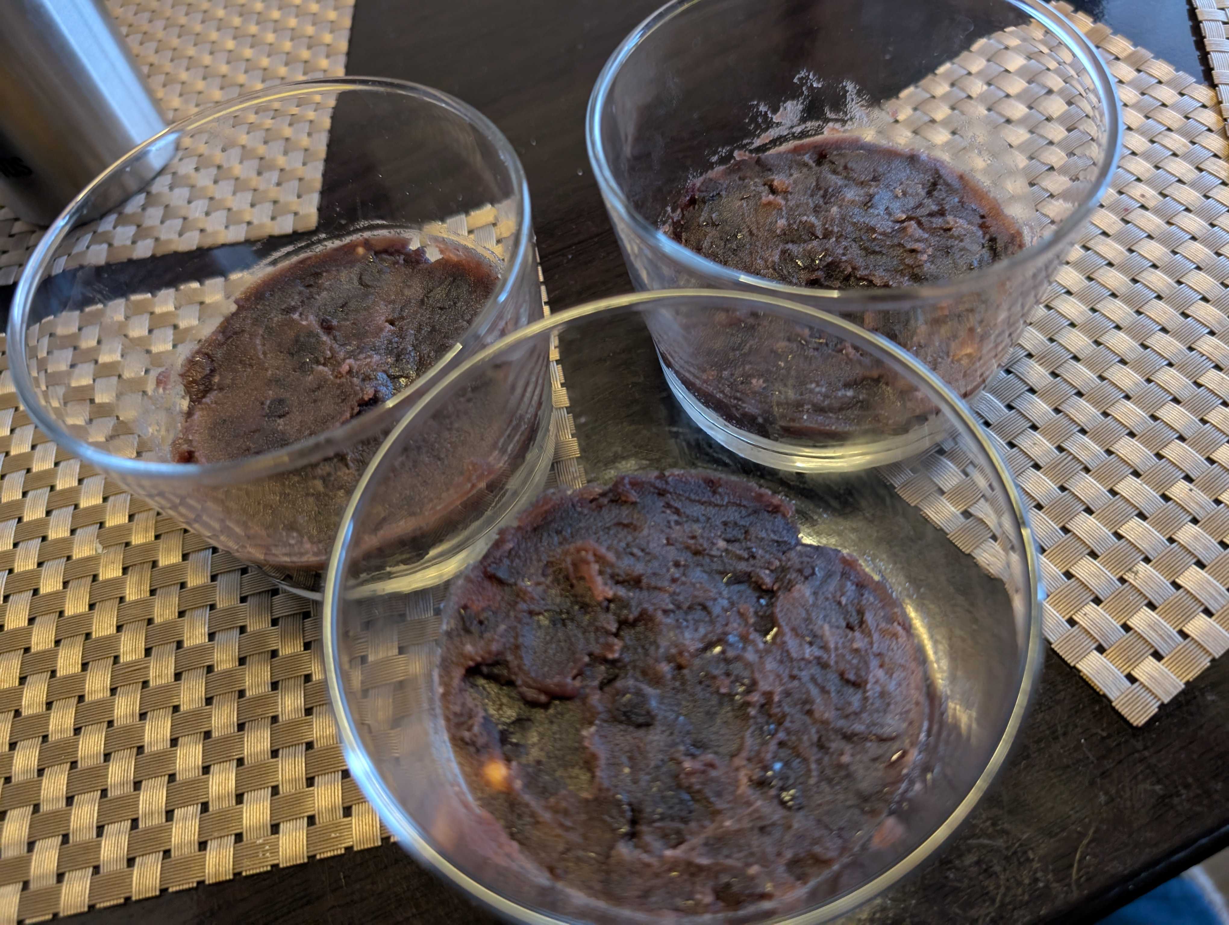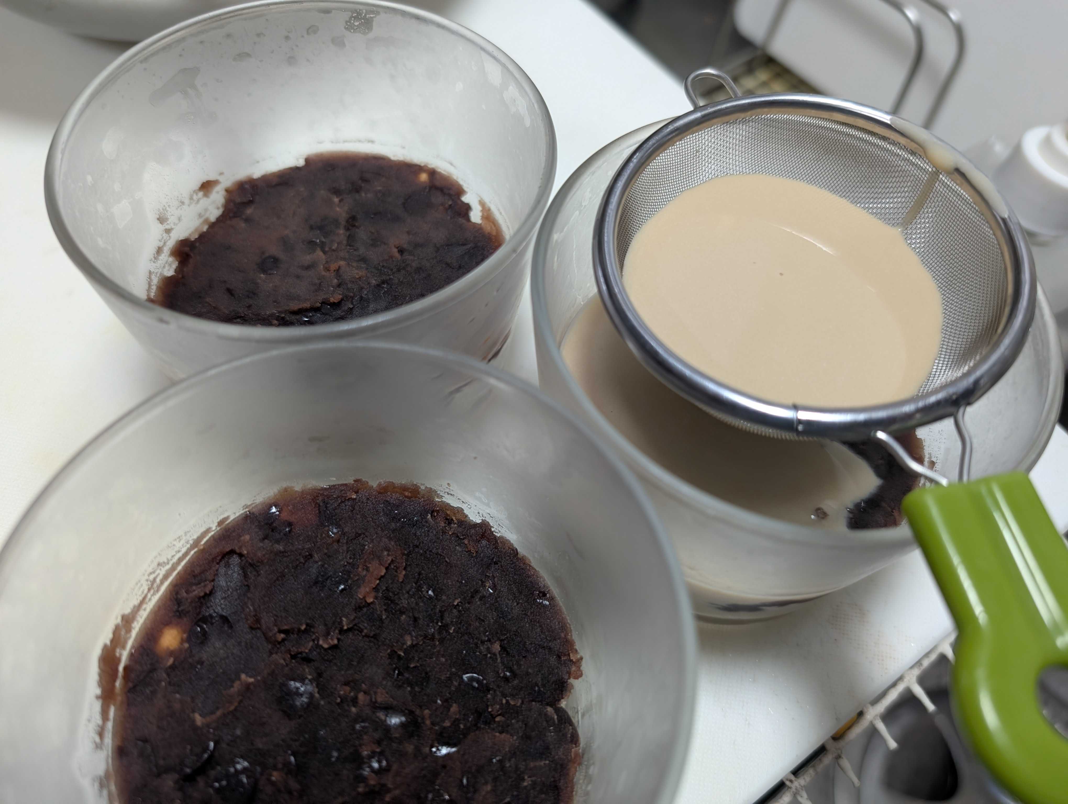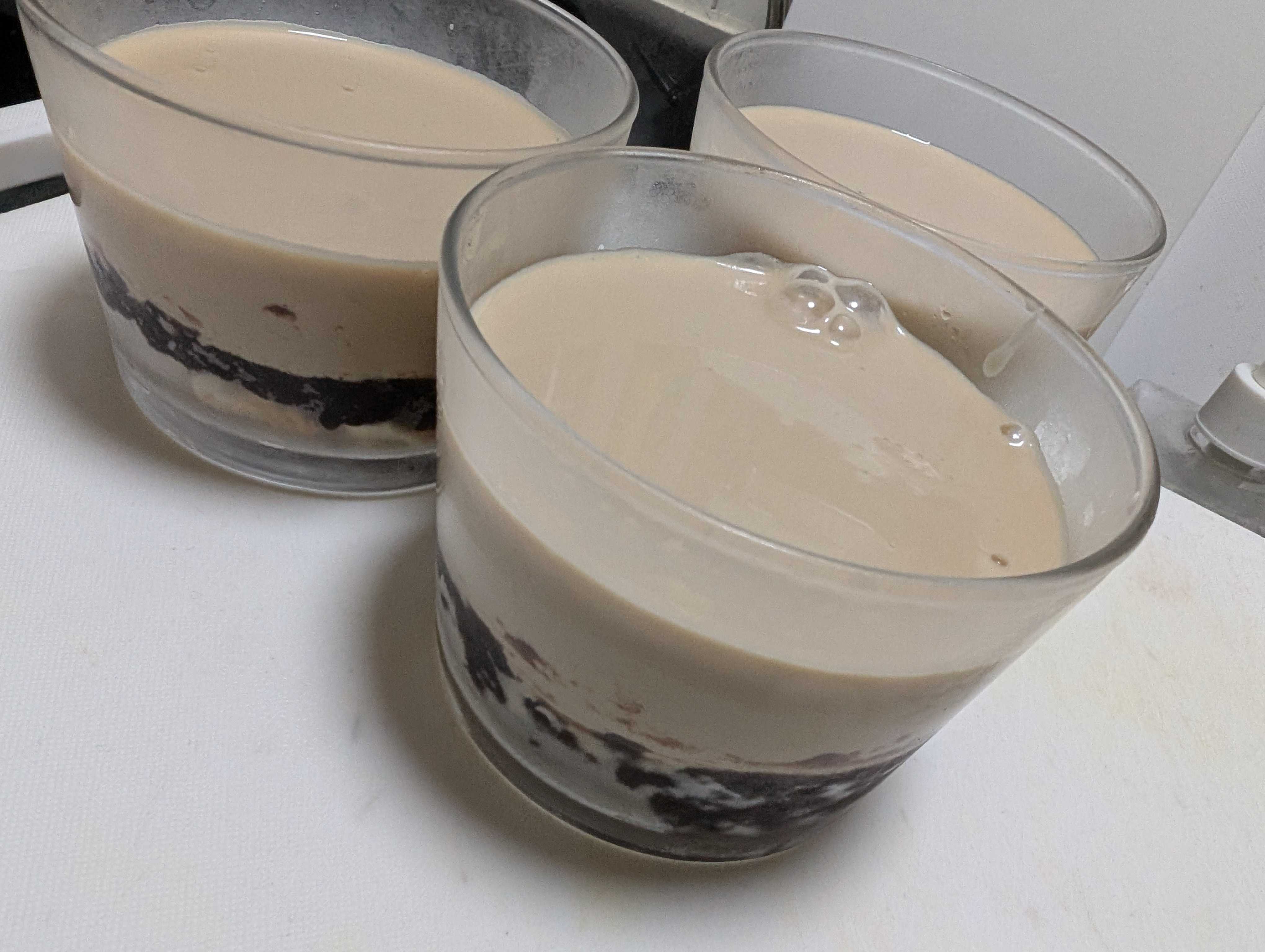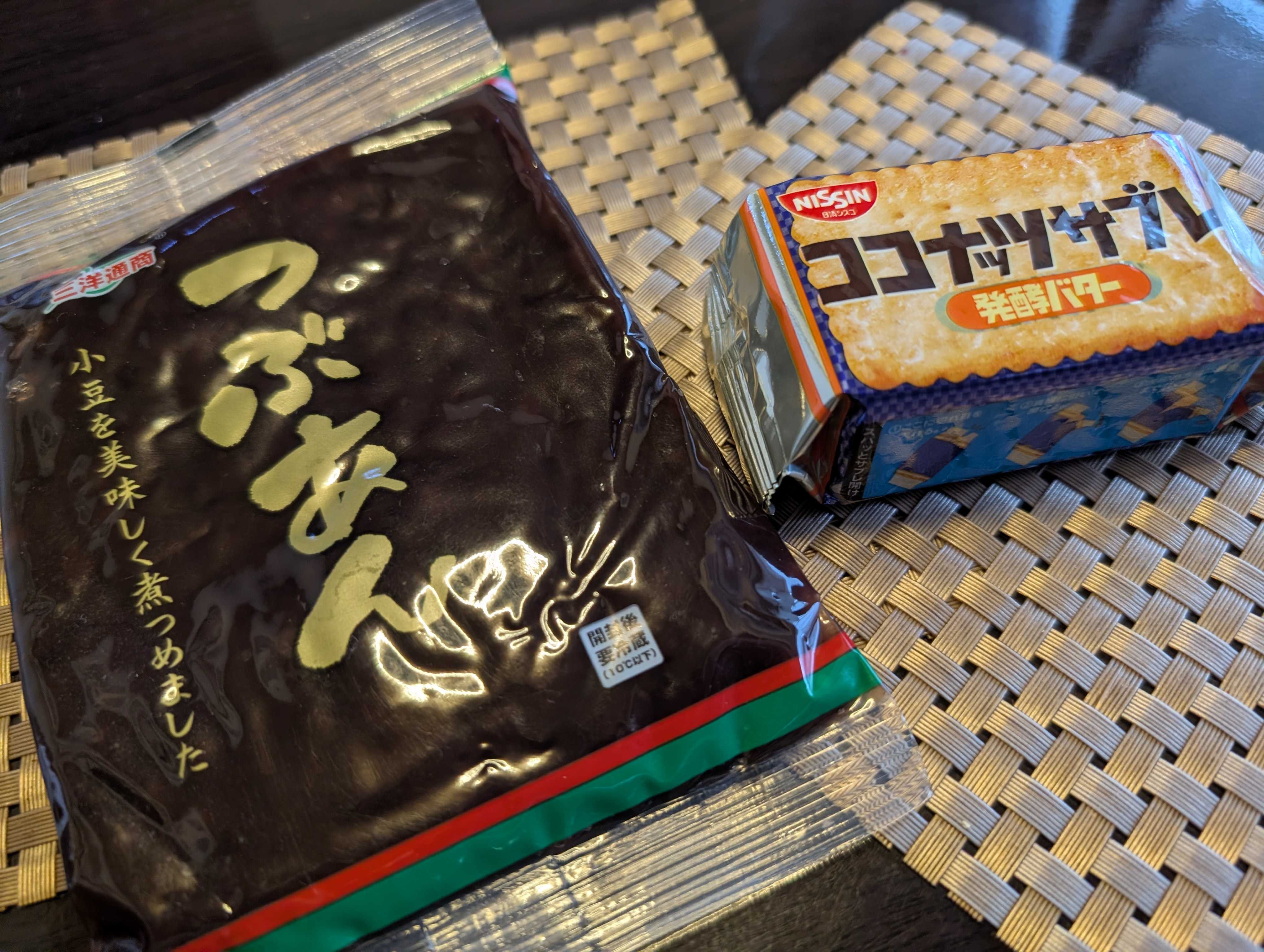 プルプル仕上げの黒糖パンナコッタからの粒あん🫘バター🧈クッキー🍪