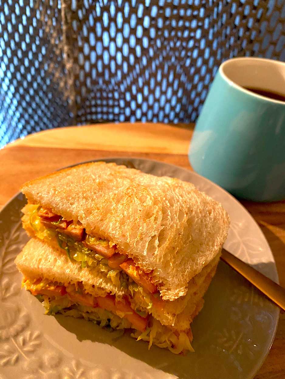 キャベツとアンチョビを合わせて軽く炒めてしんなり。キャベツの嵩を減らしてたっぷり食べたかったので炒めました。ウインナーと合わせてトーストサンド。美味しいに決まってます。