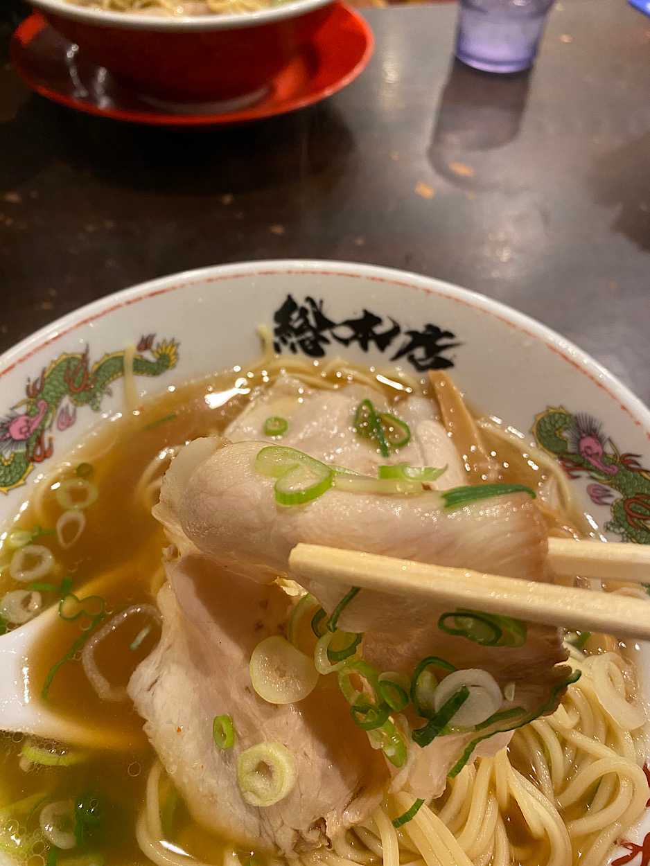 あっさりとはいえ、深みのあるスープのおかげでスープを飲むレンゲがしばらくとまらない。薄切りのチャーシューがスープと麺と絡んで最高。食べ進みラストの方で味変で豆板醤を少し。