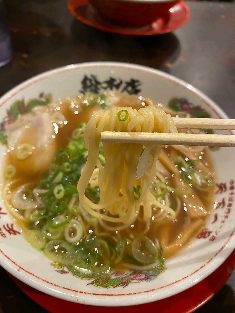 相方氏のラーメンと比べるとサラッと透き通ったスープ。