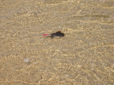 今回は新規ポイント開拓を目的に行ってきました!まずはサーフを探してウロウロ。いい感じの場所があったので投げてみると一投目から真っ黒になったイカが追いかけてきたので早速抱いてもらいました。がサイズが小さい(^_^;)何杯か釣るも全部リリースサイズなので場所移動。次にウロウロしているとなんとなく伊根の船屋に似た雰囲気でいい感じの場所発見!周りをみても人がいなくてとってものどかな感じ。でも墨跡があったのでイカはいるみたい。気分も新たに第一投!まずまずサイズが乗ってきました。その後も一投一杯で五投連続まで続きました。サイズも安定して15センチ以上とこの辺のアベレージサイズばかり釣れました。退屈しない程度に釣れ続けて最後の一投!最後を飾ったのは久しぶりにご対面の目つきの悪いこの子でした(^_^;)今回の釣行で思ったことは今の時期、イカが居そう!と思った場所には大抵イカはいるという事。人が少ないので気楽にのんびりと釣りができるのが良かったです(^^♪☆本日の釣果 アオリ31杯 + モンゴ1杯☆今期TOTAL 223杯